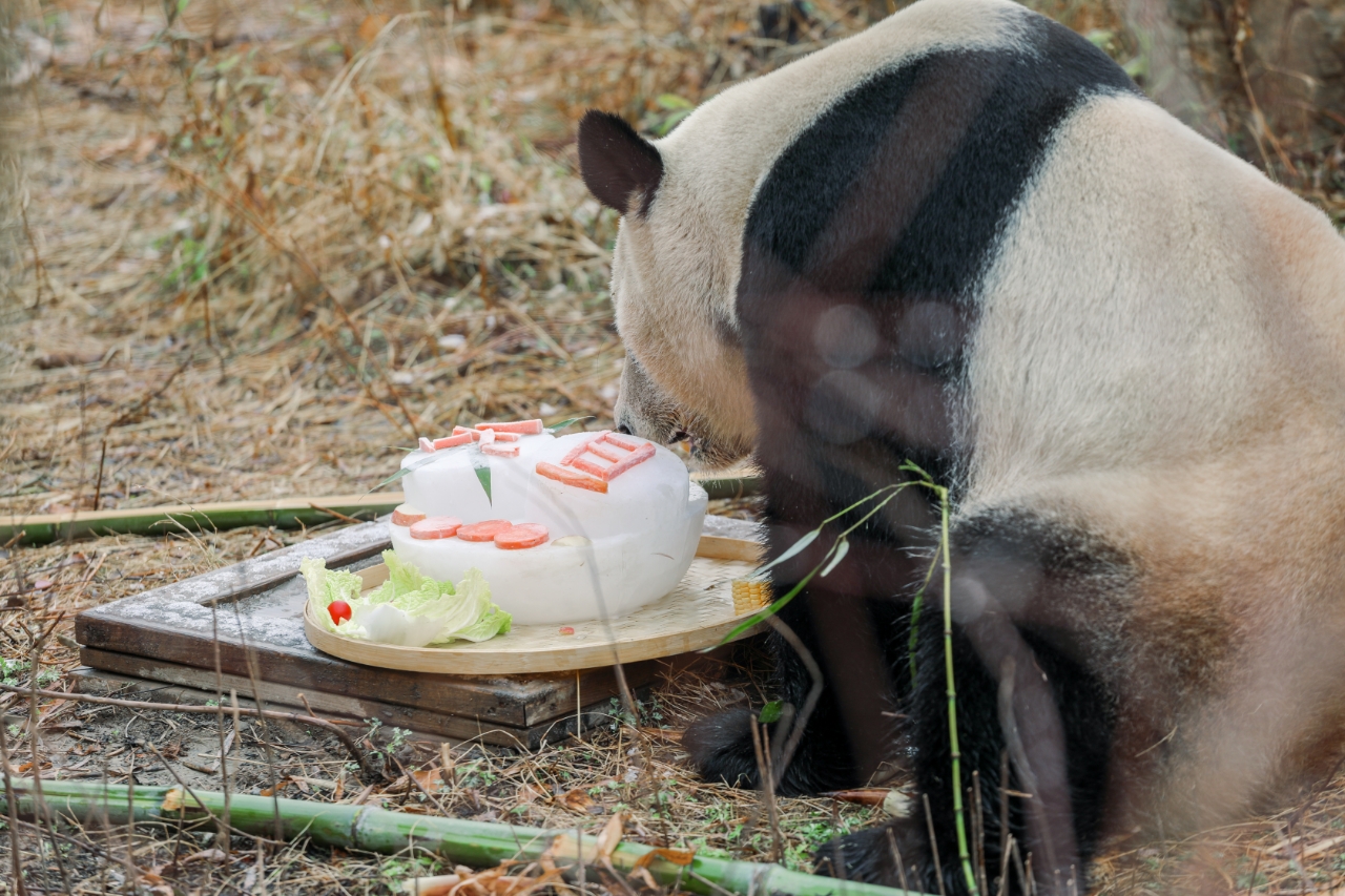 元旦假期大熊猫乐享“冰雪盛宴”