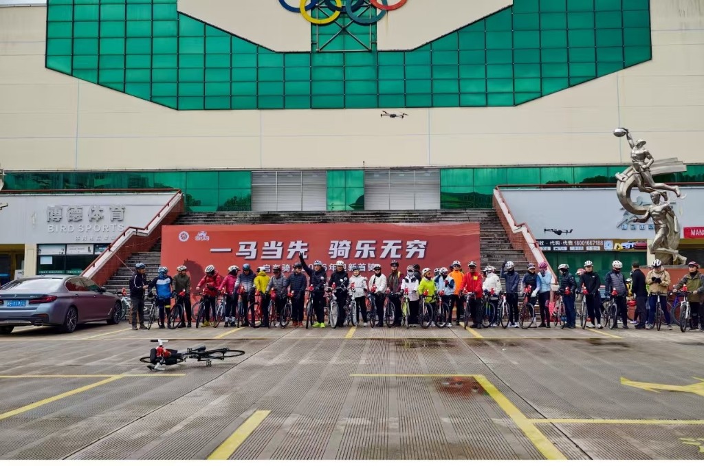 用骑行来庆祝新年到来,是启东市自行车爱好者每年的传统节目。2026年元旦,寒风刺骨,启东50多名骑友齐聚睿博体育中心,共同奔赴一场新年骑行之约。