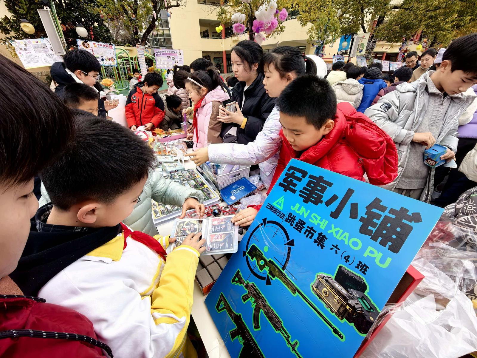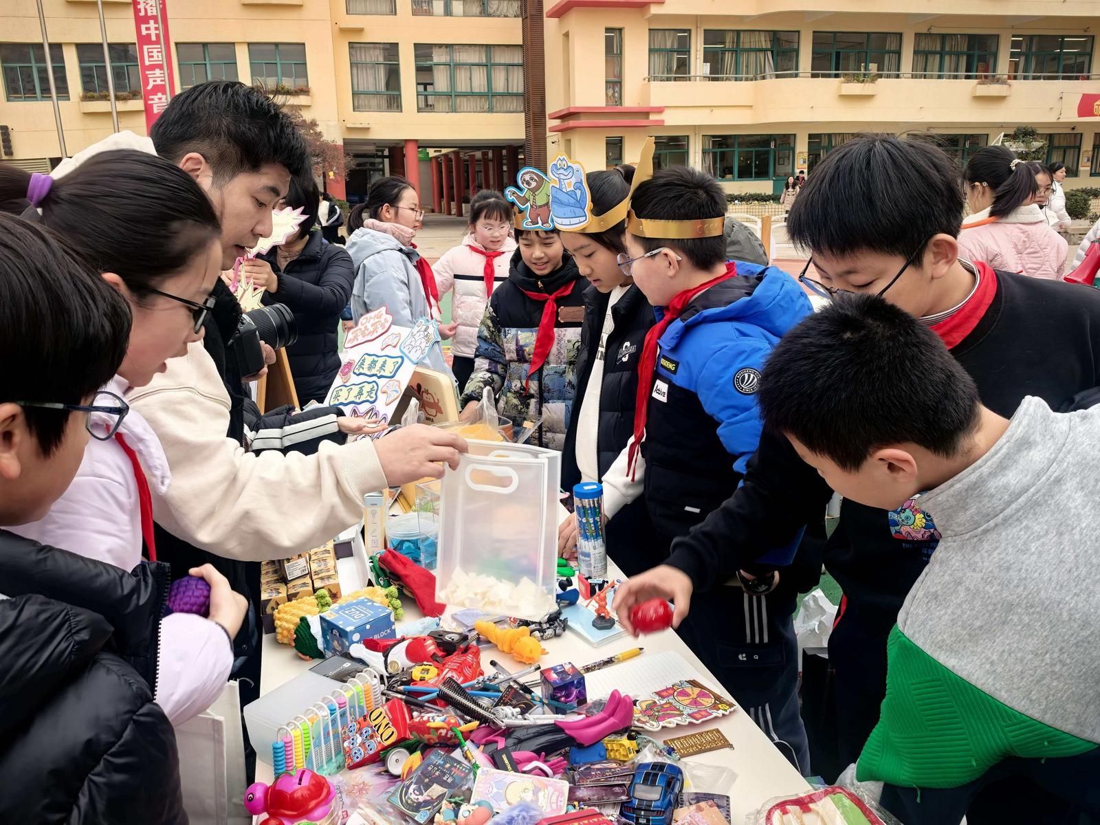 当天中午,通师二附大操场化身为热闹的“星光奇境好物集”。六年级学生主导的爱心跳蚤市场火热开市。孩子们将课堂所学的百分数知识灵活运用于商品定价、促销设计,在真实的交易场景中锻炼沟通协作能力。活动现场,书籍、文具等闲置物品有序流转,既践行了绿色节约理念,更凝聚了颗颗童心。据悉,义卖所得部分资金将注入学校“爱心基金”,用于帮助有需要的同学,让新年温暖传递。