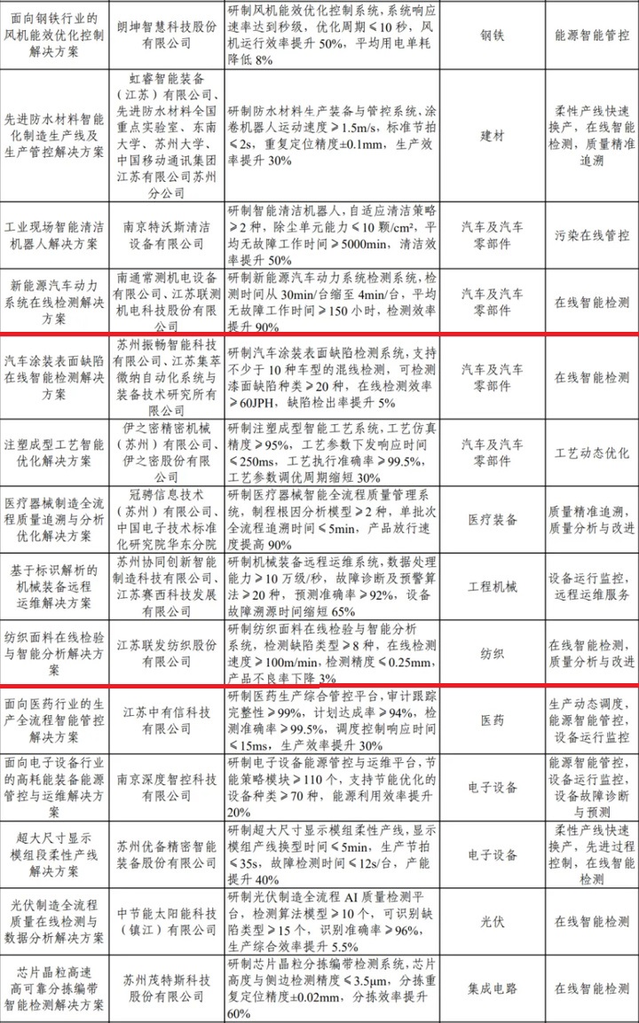 名单显示,共73个项目入选,其中,朗坤智慧科技股份有限公司的“面向钢铁行业的风机能效优化控制解决方案”等14个江苏项目在列,入选项目数最多,标志着这些企业在智能制造领域的创新成果取得国家级认可,服务的重点行业包括钢铁、建材、汽车及汽车零部件、医疗装备、工程机械、纺织、医药、电子设备、光伏、集成电器等,均为江苏的重点和优势产业。