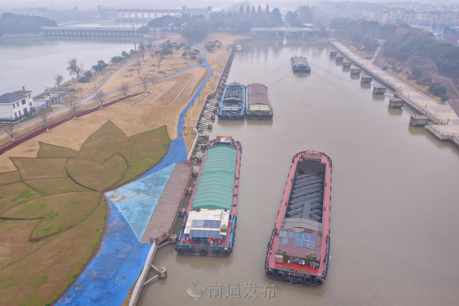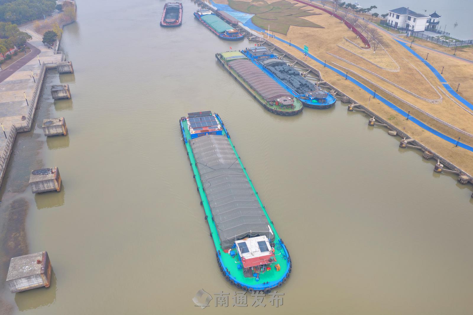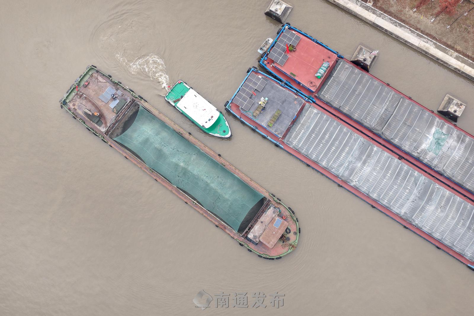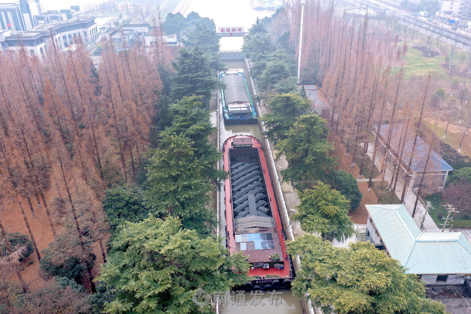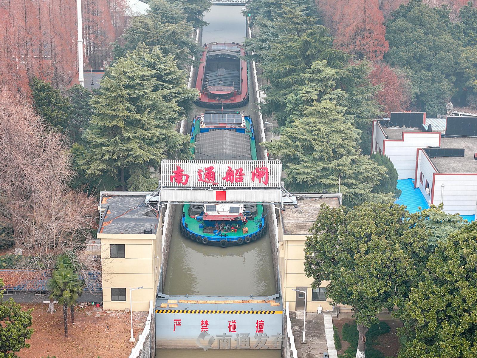 2026年1月6日,货船在崇川区通吕运河中通行。据南通市港航事业发展中心提供的数据,2025年南通港航下属五所船闸共计施放船舶235288艘,货物通过量10980.24万吨,减免优惠船舶过闸费2261.23万元。施放集装箱运输船舶7825艘、376818标箱,免征集装箱运输船舶过闸费644.88万元,同比分别增长57.79%、73.85%和63.06%。