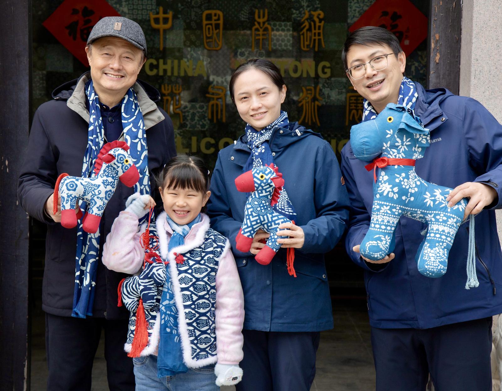 倪沈键说,蓝印花布马年系列玩偶不仅是对马年新春的庆贺,更通过非遗与现代生活的连接,让传统工艺焕发新生。错落摆放时,红蓝交织的色彩洋溢着浓郁的年味与艺术气息,成为传递祝福的文化载体。