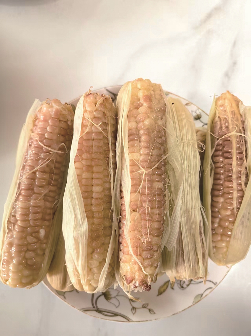 冬至后的清晨,我正准备吃早饭,一缕馥郁的玉米香从厨房飘来。掀开锅盖,热气氤氲间,半锅带苞壳的玉米棒静静卧着。我伸手捞起一穗,撕开苞壳咬下。紫玉米黏汁饱满、香糯甘爽,便好奇地问妻子:“寒冬哪来的鲜玉米?”妻子笑着揭秘:“这是秋天收的,煮好后冻在冰箱里。”
