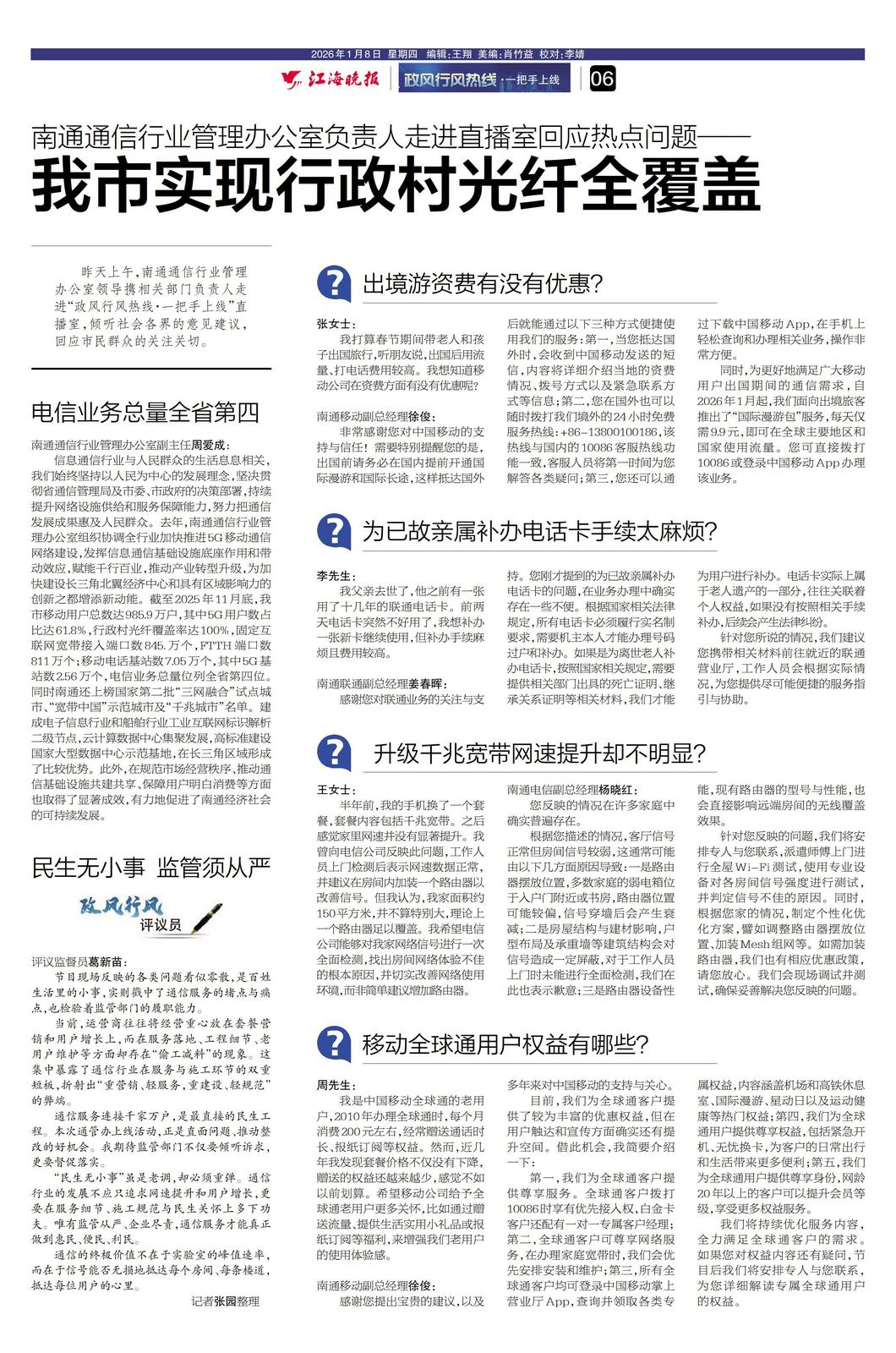 政风行风热线 | 南通通信行业管理办公室负责人走进直播室回应热点问题:我市实现行政村光纤全覆盖