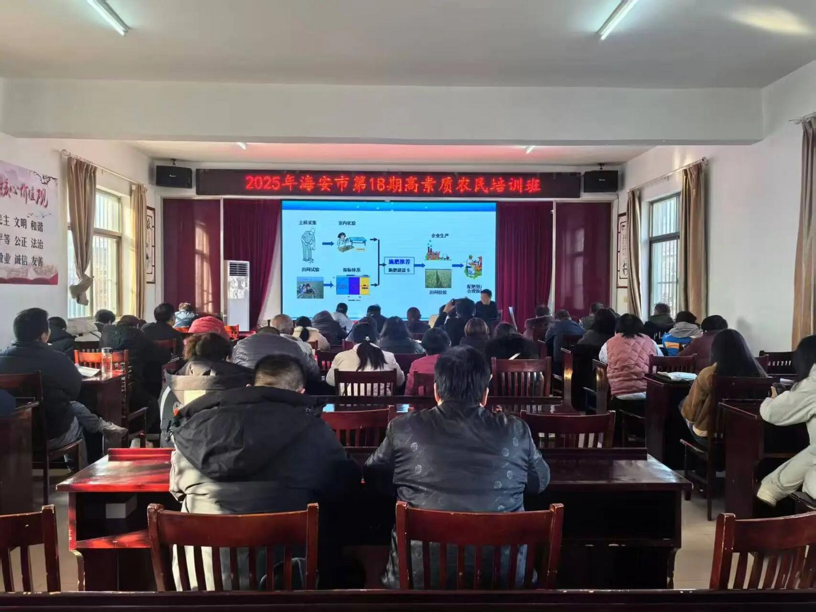 “这块麦田的土壤氮磷钾含量偏低,要补施有机肥!”近日,由海安市农业农村局主办、白甸镇农社办承办的海安市第18期高素质农民培训班在白甸村开班,原本该“猫冬”的农户们,化身勤奋学子,让冬闲时光变成了充实的“学忙”时刻。