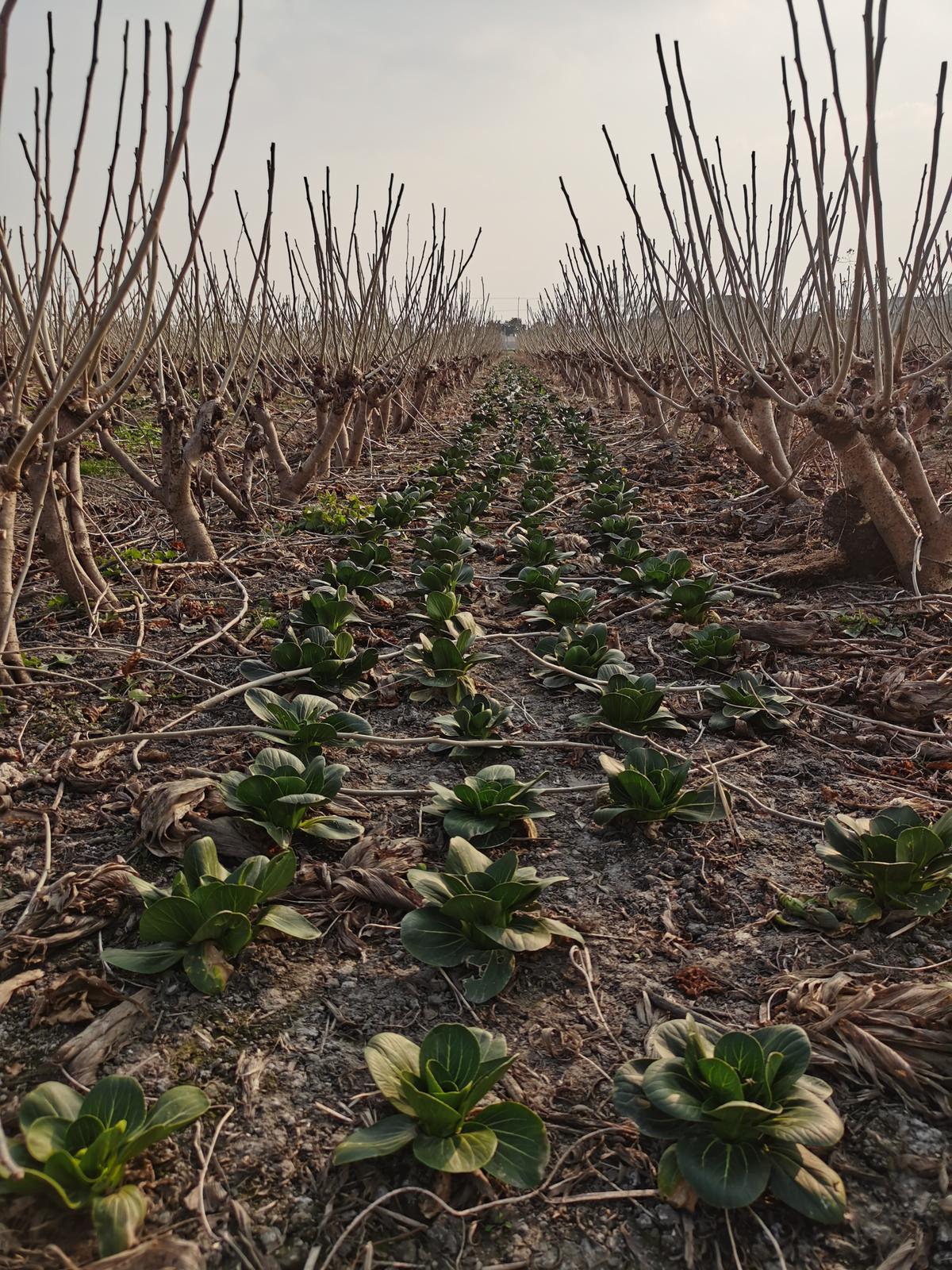 “秋蚕结束到春蚕饲养,桑园有近半年空档期,土地闲着太可惜。”农场主李忠华介绍,看似简单的“桑下种菜”,实则藏着精细的种植逻辑——利用桑园冬闲期套种蔬菜,既充分挖掘了土地潜力,又开辟了新的肥源,为桑树生长提供了大量的有机肥。并且由于有特殊的小气候环境,既挡风保湿,又有利于桑树早发芽,使其生长良好,同时遭受寒潮袭击的影响也较小。