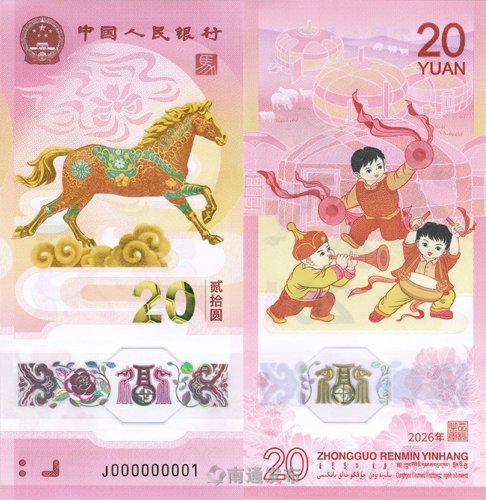 2025年12月22日,中国人民银行2026年贺岁纪念币和纪念钞开始陆续发行。自2024年起,这一系列的生肖纪念钞已发行过龙钞、蛇钞,今年则轮到马钞登场。