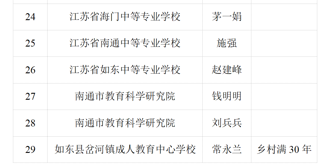 文件显示,经过省中小学正高级教师高级专业技术资格评审委员会评审通过,我市海门中等专业学校教师茅一娟等6人获得中等职业学校正高级讲师任职资格,如东县实验中学教师周卫红等43人具备中小学(幼儿园)正高级教师任职资格。