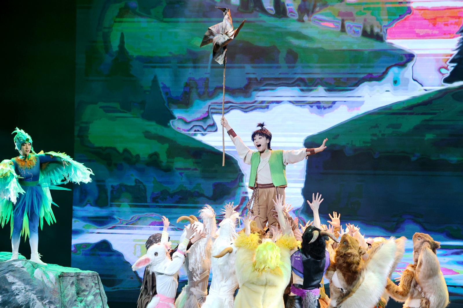 全剧以原创音乐为灵魂,旋律随剧情跌宕流转,结合演员极具张力的肢体动作与风格化舞蹈,细腻刻画角色内心世界。视觉设计突破传统框架,通过色彩对比、光影特效与立体布景,打造充满想象力的舞台盛宴,将敦煌壁画的神秘感与现代审美巧妙融合。创新互动模式成为本剧亮点,全剧未刻意说教,而是通过“观众参与传递道具”“回应角色提问”等环节,让孩子们在互动中自然领悟“对立到共生”的转变逻辑。这种“润物细无声”的表达方式,既保留了剧目原有的本色,又以符合当代儿童认知的方式完成传统故事的现代转化,让传统经典焕发出贴近生活的生命力。