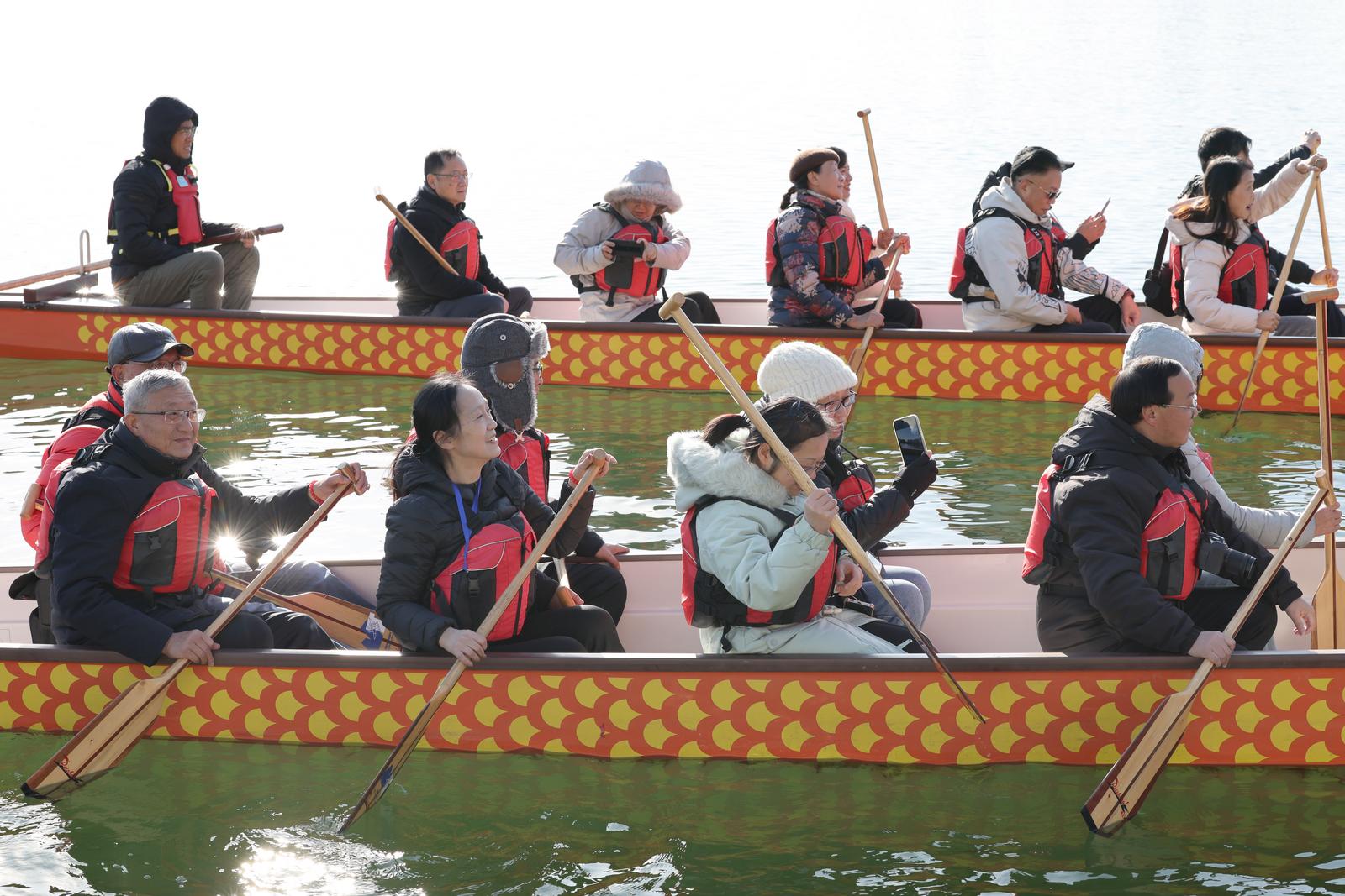 2026年1月11日,崇川区摄影家协会开展“2026龙舟祈新活动”,组织数十位会员划龙舟,畅游宝月湖5公里生态水域,沿途拍摄人文与自然风光,用镜头记录新年伊始的活力与美景。