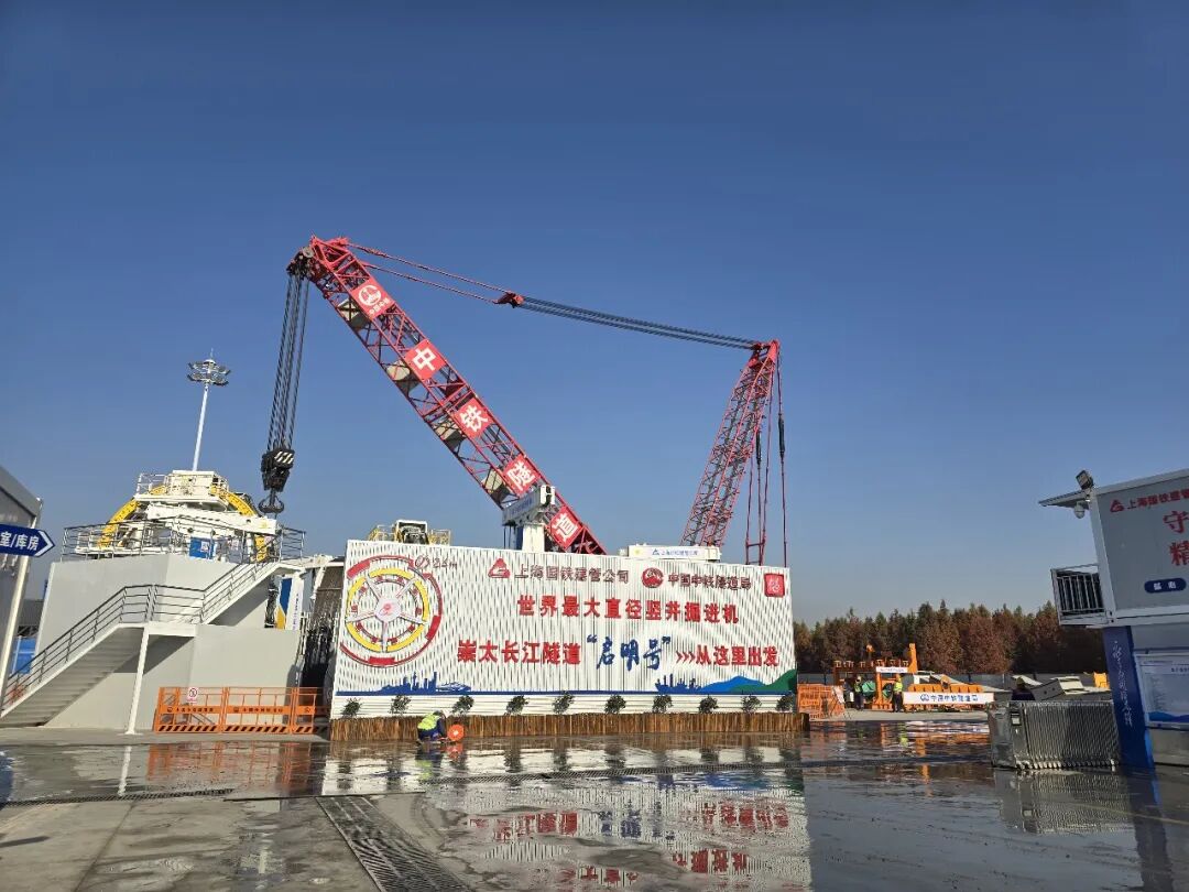 “启明号”竖井掘进机由主驱动、支腿撑紧、截割双臂等系统模块组成,搭载“掘进自适应、导向自精控、参数自调整、拼装自同步、齿座自设计”等多项创新技术,具备自主下沉、自主导向、自主环控、自主感知和自主控制能力,在临江漫滩、高水压、复合地层中可实现“有人值守、无人操作”的智能掘进与衬砌同步拼装,成功解决超深富水复合地层中“看不见、摸不着、测不准、控不住”等技术难题,推动超深竖井施工从传统模式向“井下无人化、井上少人化”的智能建造模式跨越式升级,开创了高铁竖井掘进机施工新纪元。2号竖井的建成,将为崇太长江隧道“领航号”盾构机的接收、二次始发及全隧贯通奠定坚实基础。