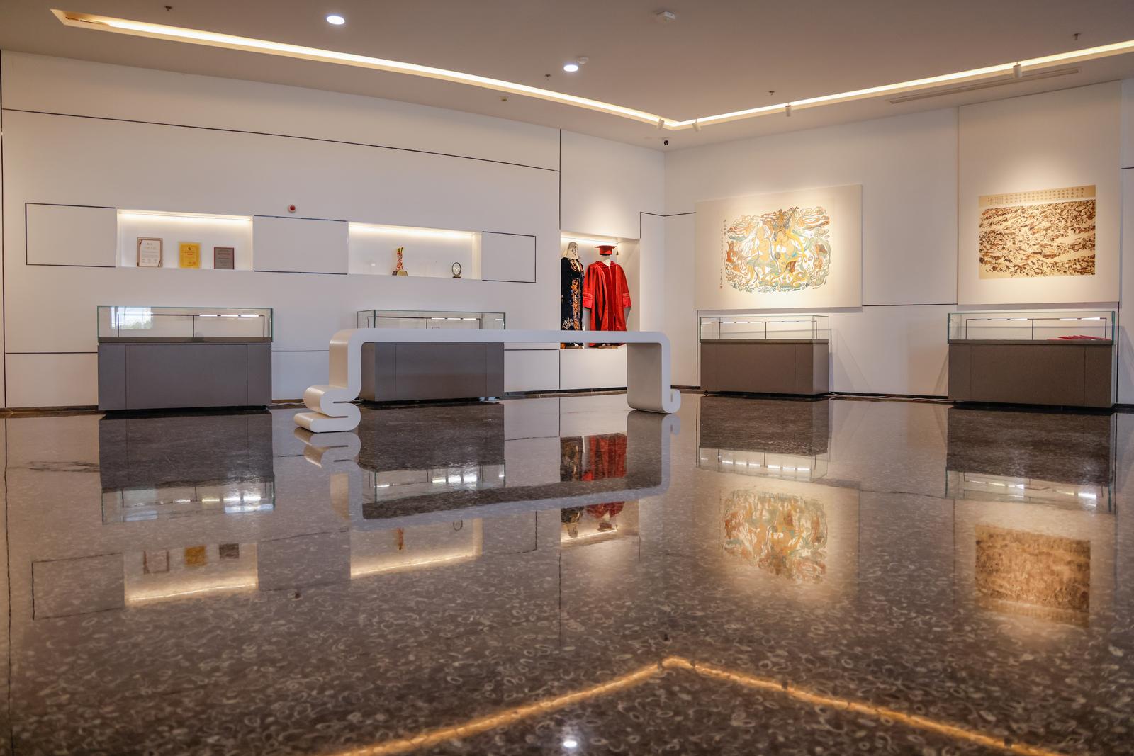 新落成的“范扬艺术馆”,通过图文、视频、实物文献与画作,全方位展现范扬的艺术人生。南通文化艺术中心展览运营负责人任明星介绍,艺术馆整体围绕展陈内容进行设计,力求为观众带来清晰和愉悦的观感。其中,文献展区以代表作复制件及荣誉勋章等实物,回溯范扬的艺术大事记;文字说明采用丝网印刷工艺,配图则采用铝塑板UV制作,进一步增强了展陈的立体感与现代感。