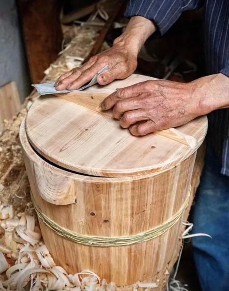 箍桶匠制作的木器材质都是杉木。因为杉木质轻,不蛀,耐腐蚀,遇潮湿即膨胀,作为容器不漏水。尤其是湖南产的杉木,结实而味香。江西产的次之。最差的是福建产的杉木,质稀松,易变形。