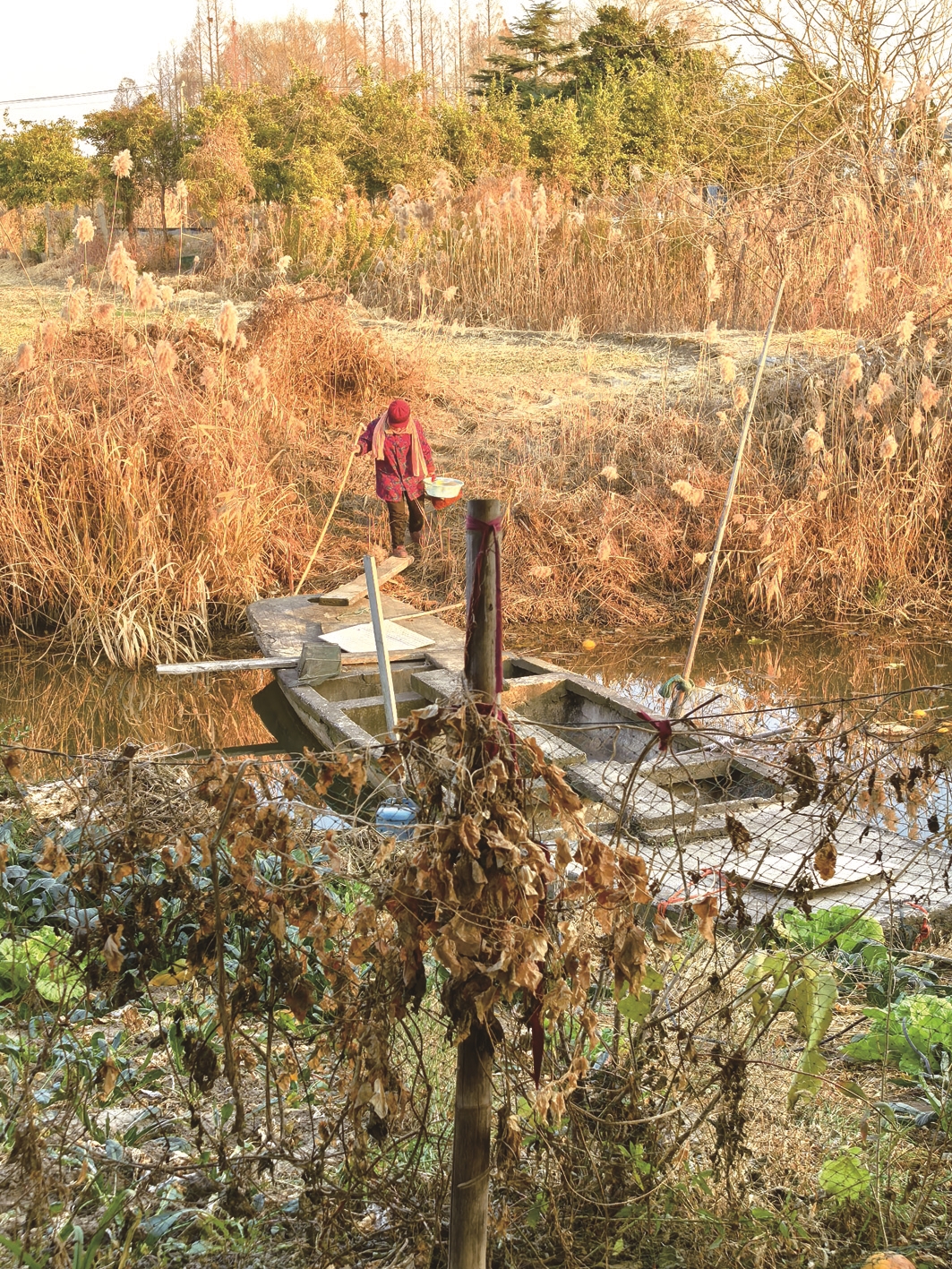 通往河东池塘,要先跨过一条宽十多米的河。早年,父亲为了方便,在一条废弃水泥船的两头各放了一块长而窄的跳板,搭成一座简易的“桥”,走上去摇摇晃晃,却陪伴了我们三十多年。上岸后,是一条父母当年用脚踏出来的田间小道,弯弯曲曲、逶迤而上。抬头望去,风景如画,令人心旷神怡。