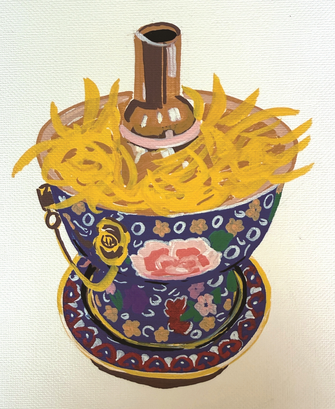 那晚的菊花锅终究成了一段怅惘的记忆。于是,我尝试用画笔,将菊花锅留住。看到它,我就想起那美好的北京一夜。