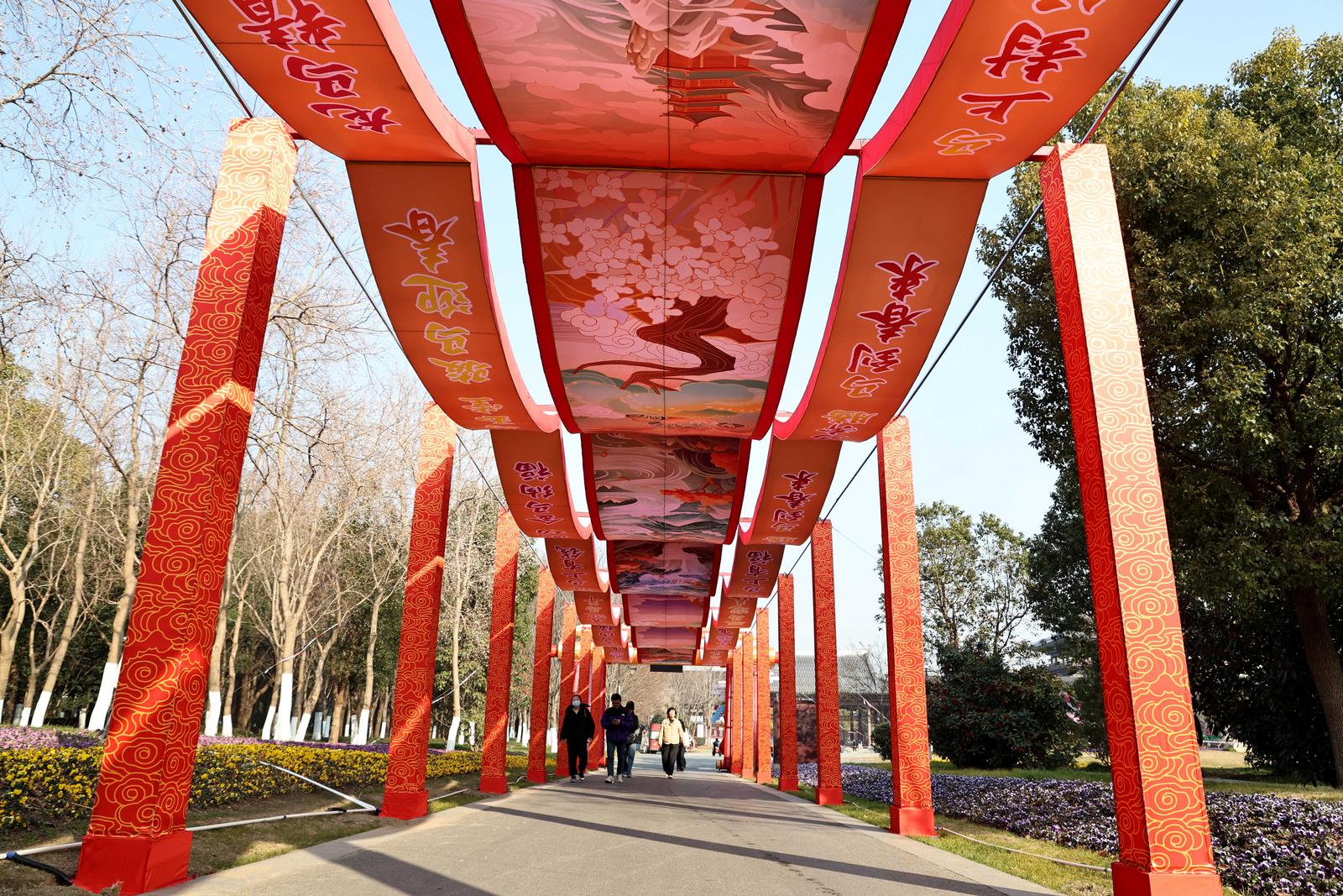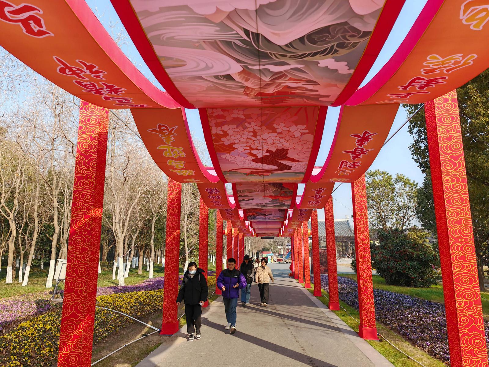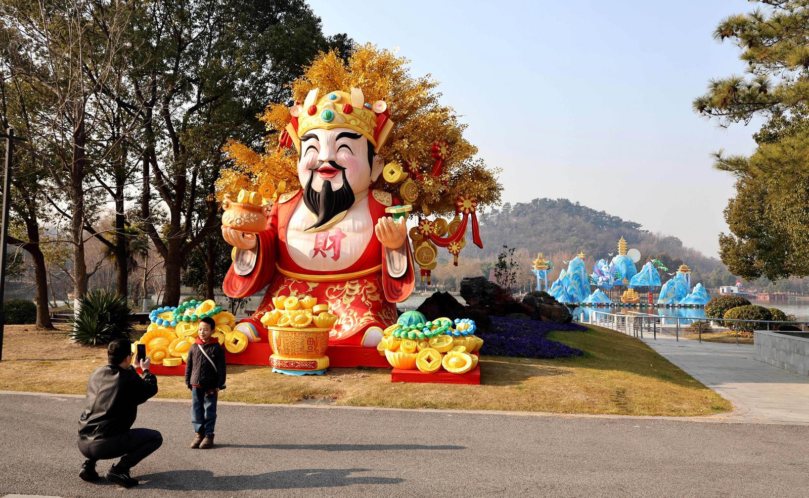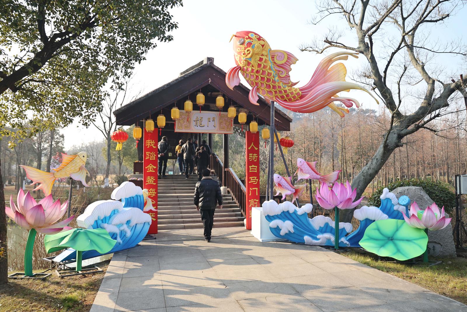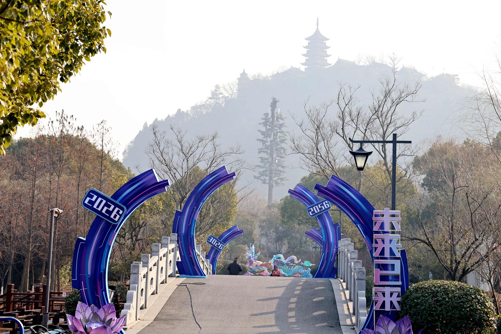 本次灯会由四川自贡彩灯匠人精心雕琢,设有三大主题展区,主打《以梦为马》《花仙胜境》《招财纳福》等特色灯组造景。赏灯路线从狼山北门起始,环绕映山湖一周,全长约1.36公里。1月15日,记者在现场看到,不少彩灯已初具雏形,光影交织间显露出节日氛围。