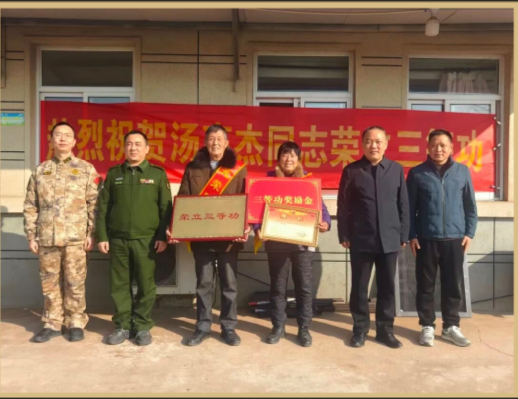 据了解,陆春尧同志2013年9月入伍,在2025年度工作中成绩突出,荣立战备训练三等功。汤高杰同志2012年9月入伍,在2025年度工作中成绩突出,荣立战备训练三等功。活动现场,送喜报小组为军人家属佩戴绶带、宣读喜报,送上立功奖励金;并与军人家属亲切交谈,详细询问他们的生产生活情况和身体状况,感谢他们为国家输送人才,为家乡赢得荣誉。
