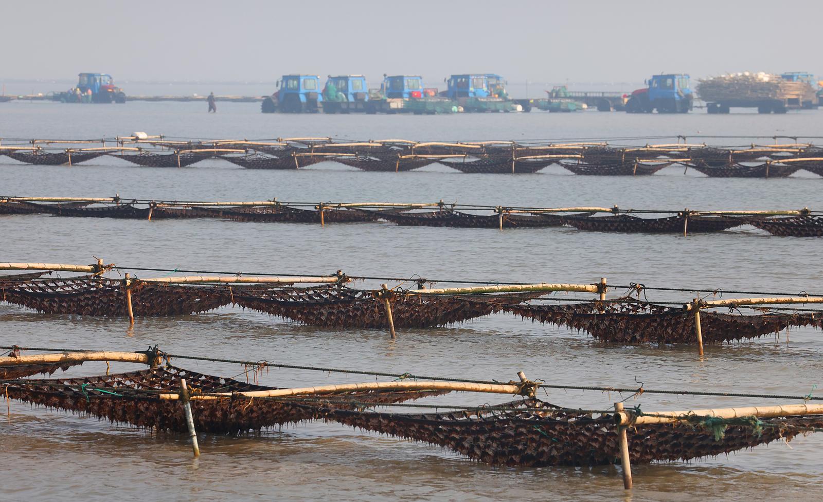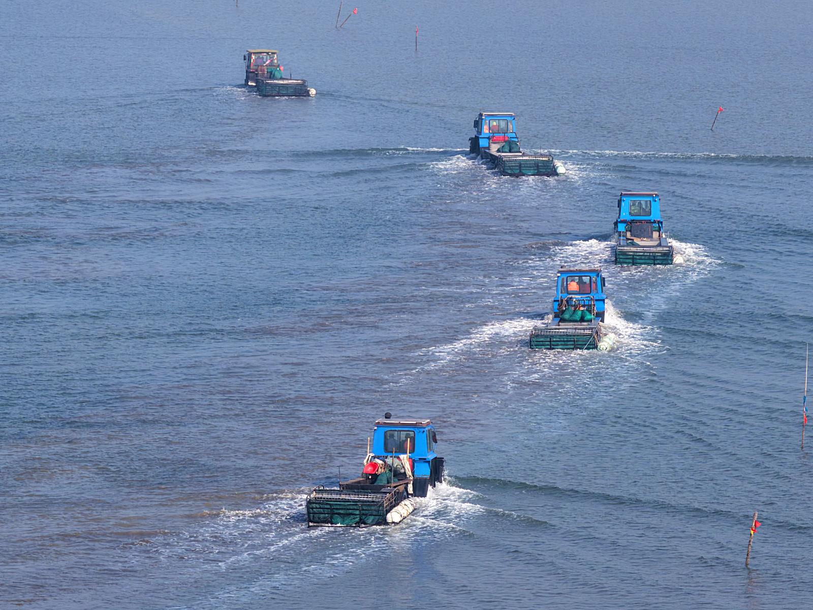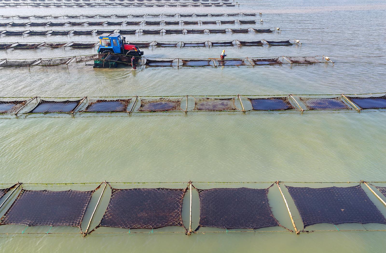 2026年1月15日,如东县长沙镇滨海村位于黄海的紫菜养殖区一片忙碌。