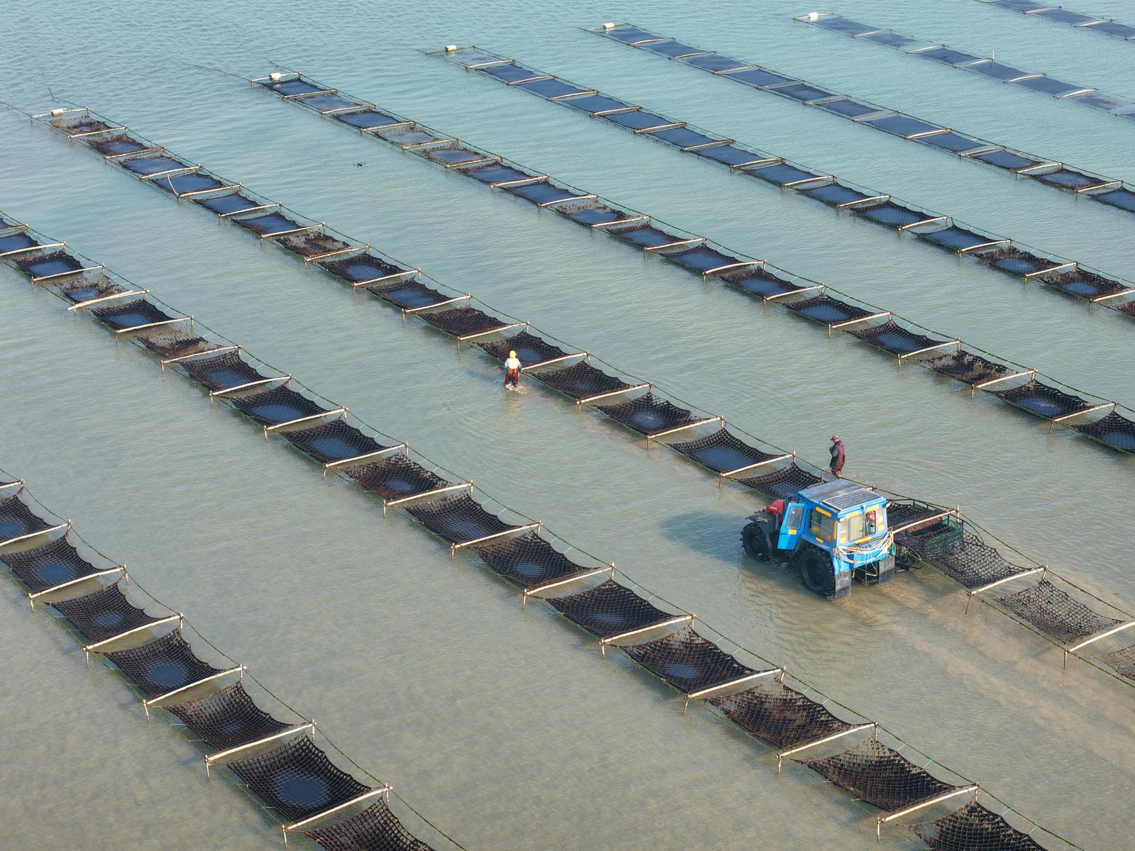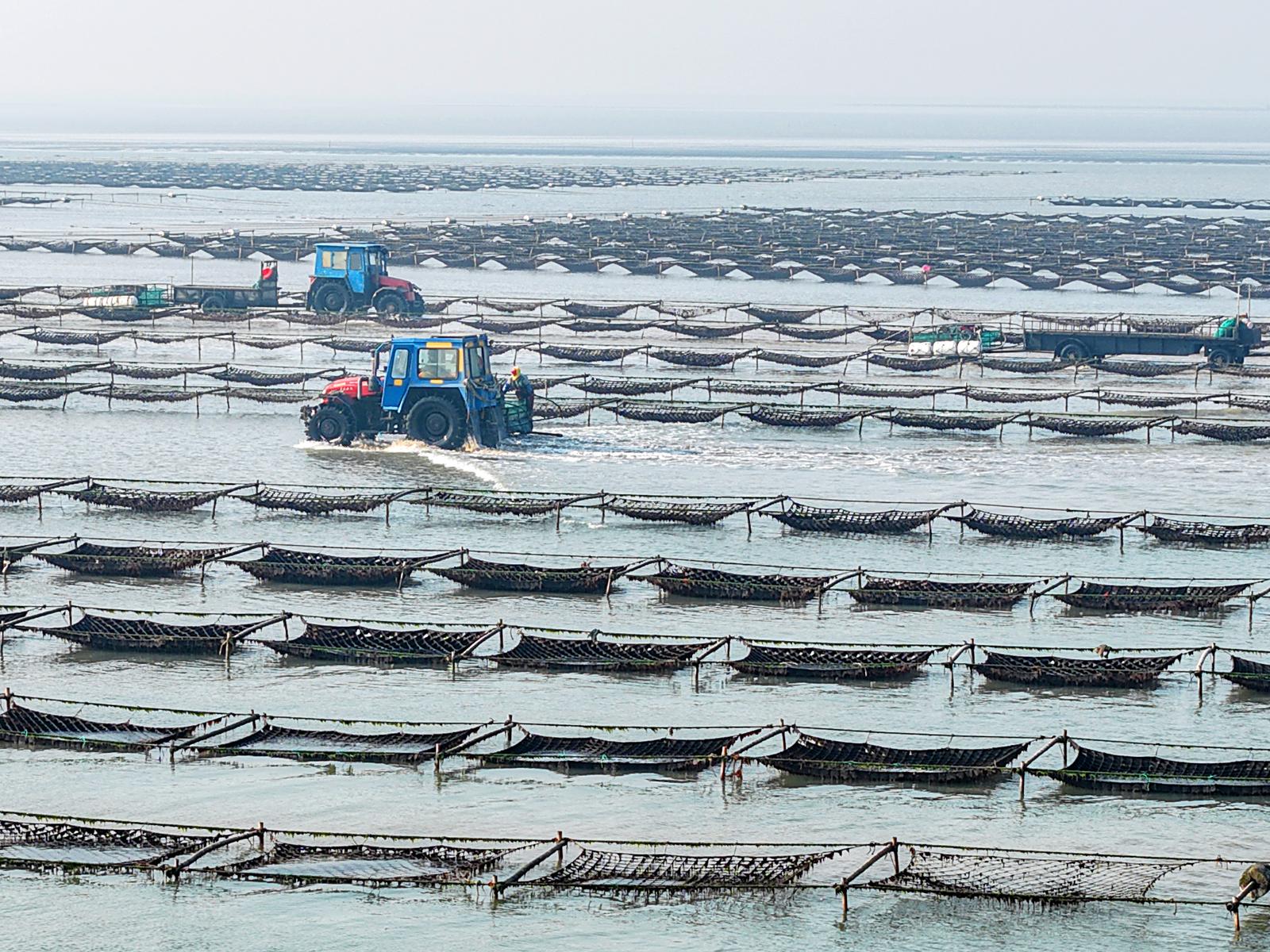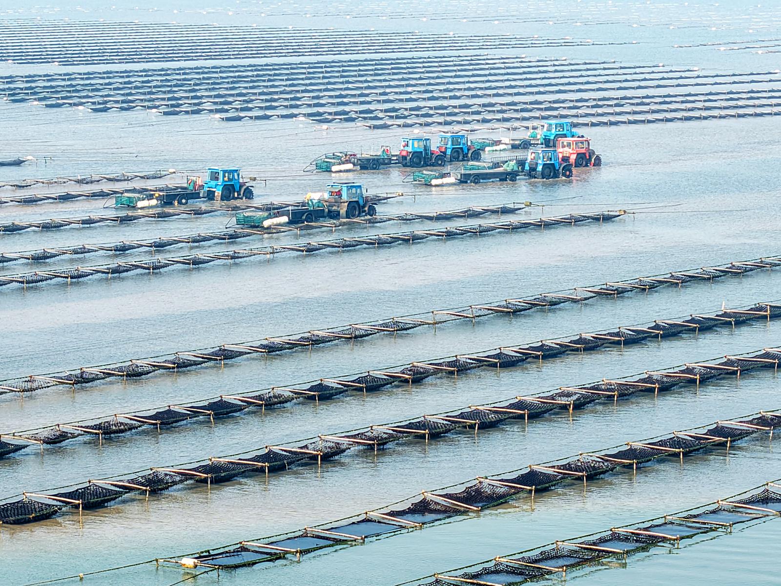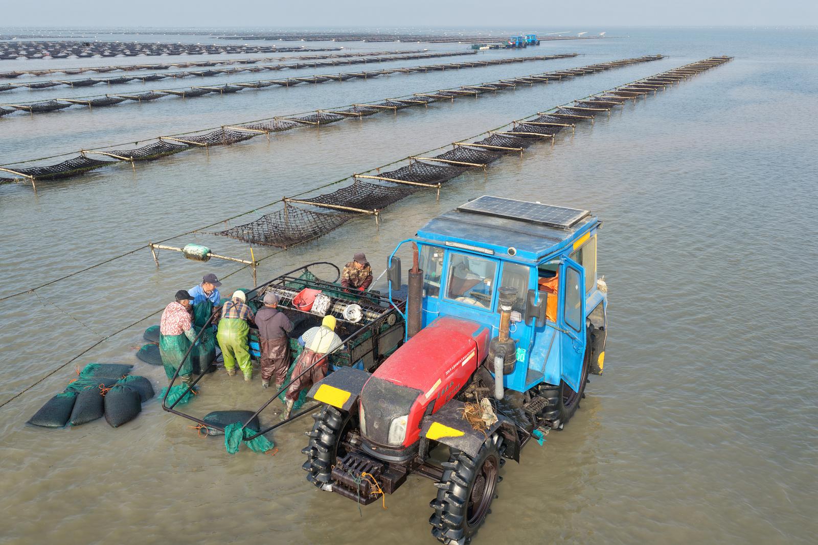 2026年1月15日,如东县长沙镇滨海村位于黄海的紫菜养殖区一片忙碌。