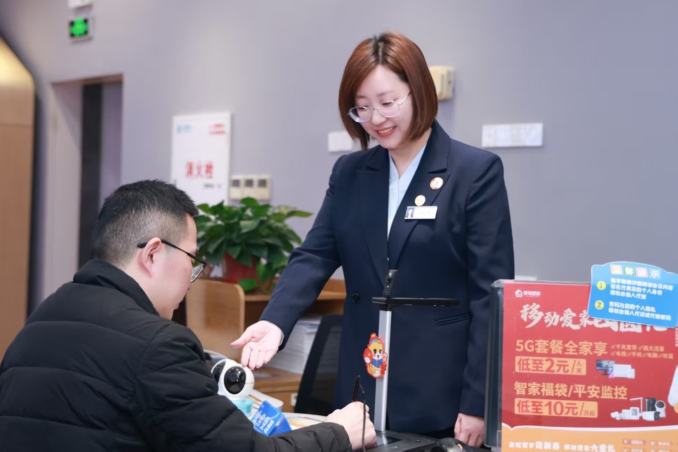 她的细心不只限于厅内。一次,服务厅即将结束营业时,一位中年女士急匆匆赶来,表示家中宽带突然中断,孩子第二天有重要的线上考试。宁静当即安抚客户情绪,一边联系夜间值班的装维同事说明情况,一边通过系统远程协助排查。发现是光猫故障后,她协调同事带上备件紧急上门,并在等待期间用自己的手机热点为孩子测试网络,确保线上环境畅通。故障解决后,客户连声道谢:“这么晚还麻烦你们,真是过意不去。”宁静只是笑笑:“孩子的学习是大事,能帮上忙就好。”