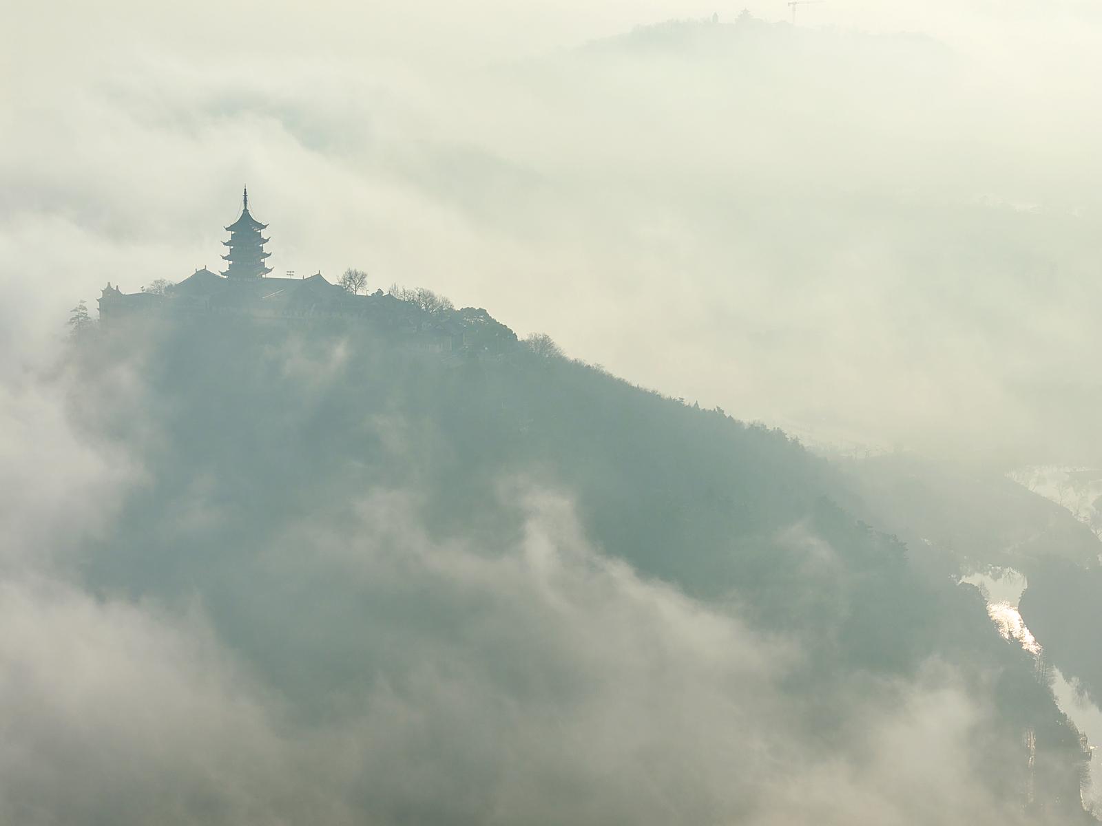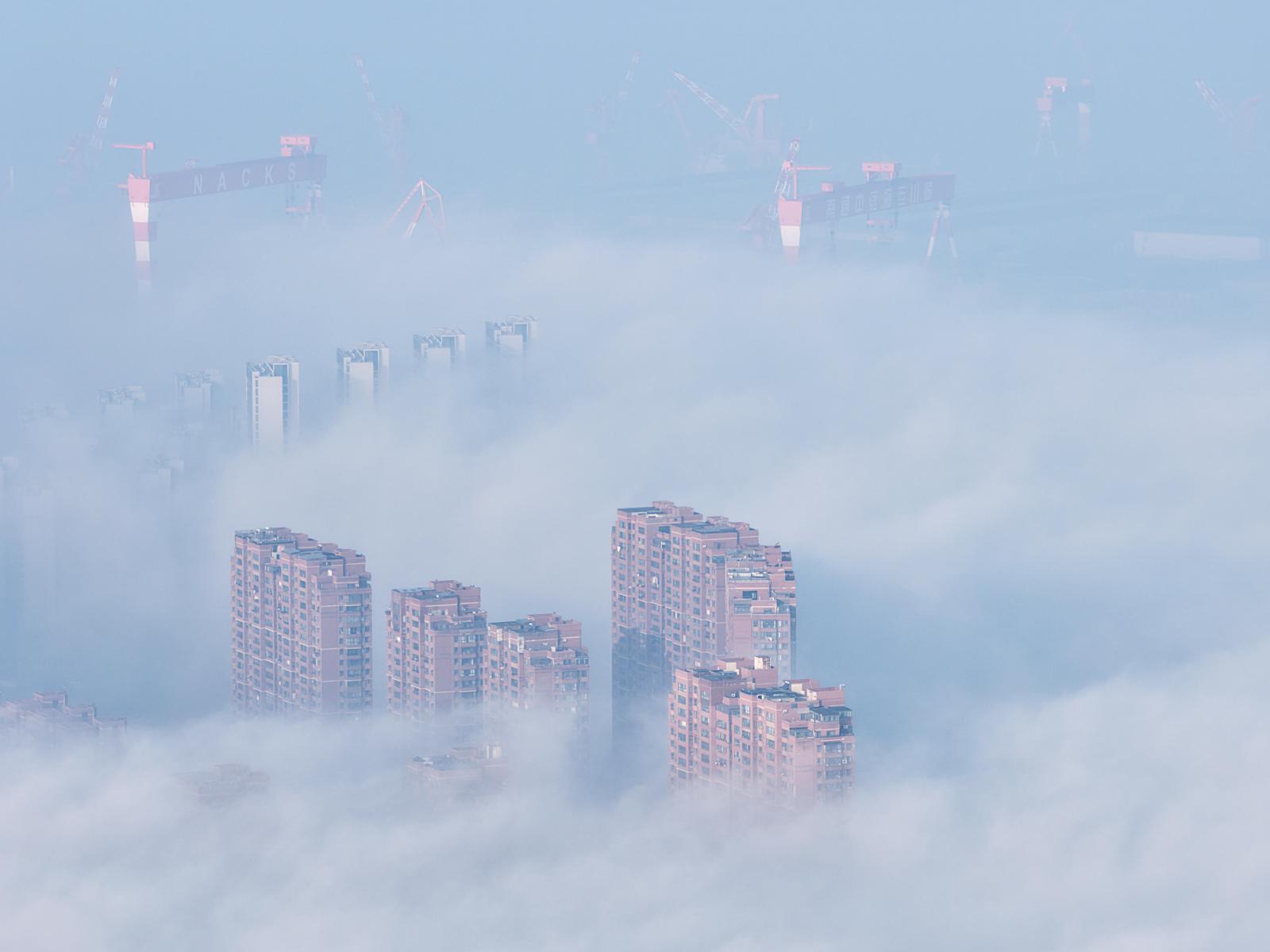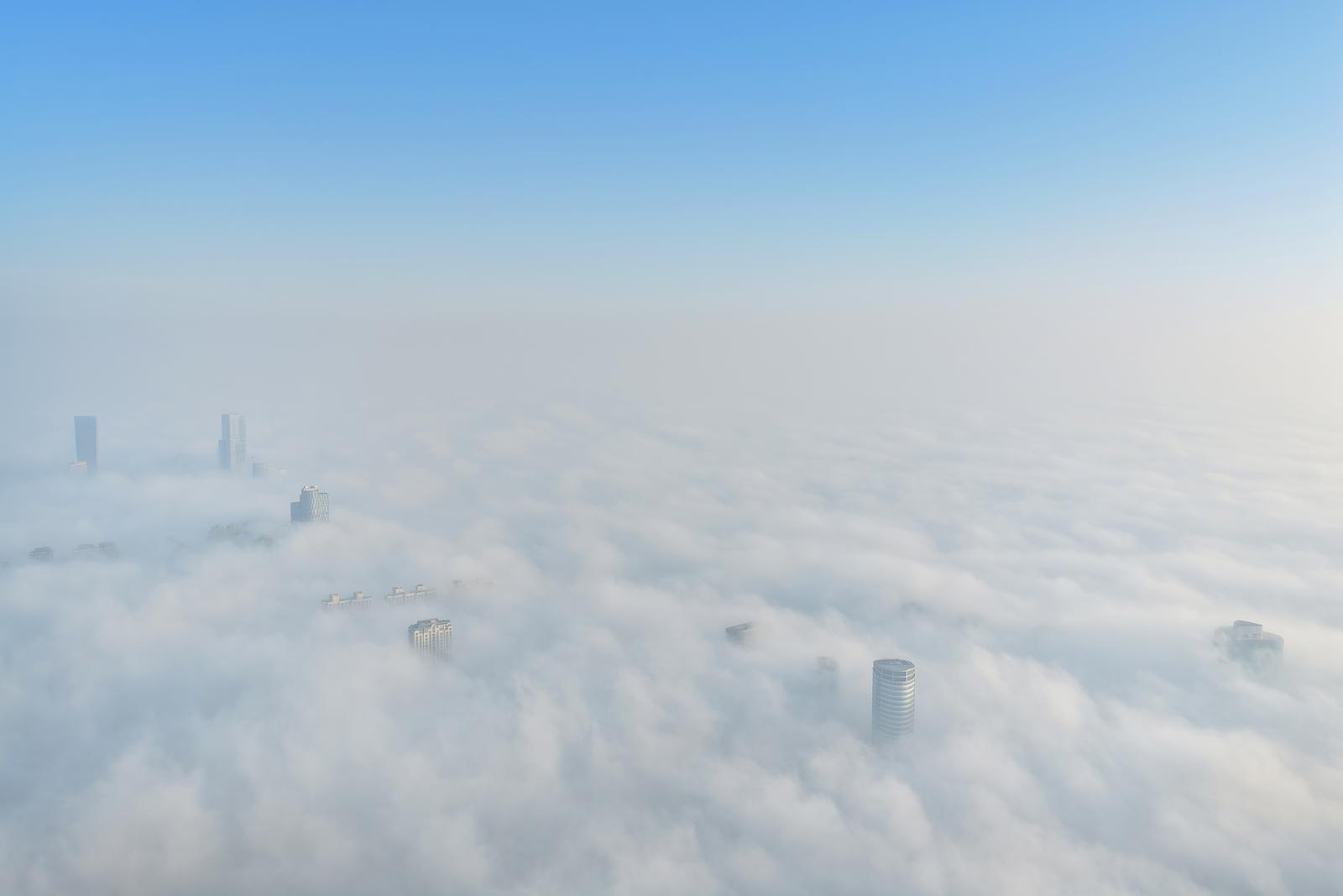 2026年1月16日,晨雾中的南通狼山国家森林公园和南通新城区高楼展现出别样美景。