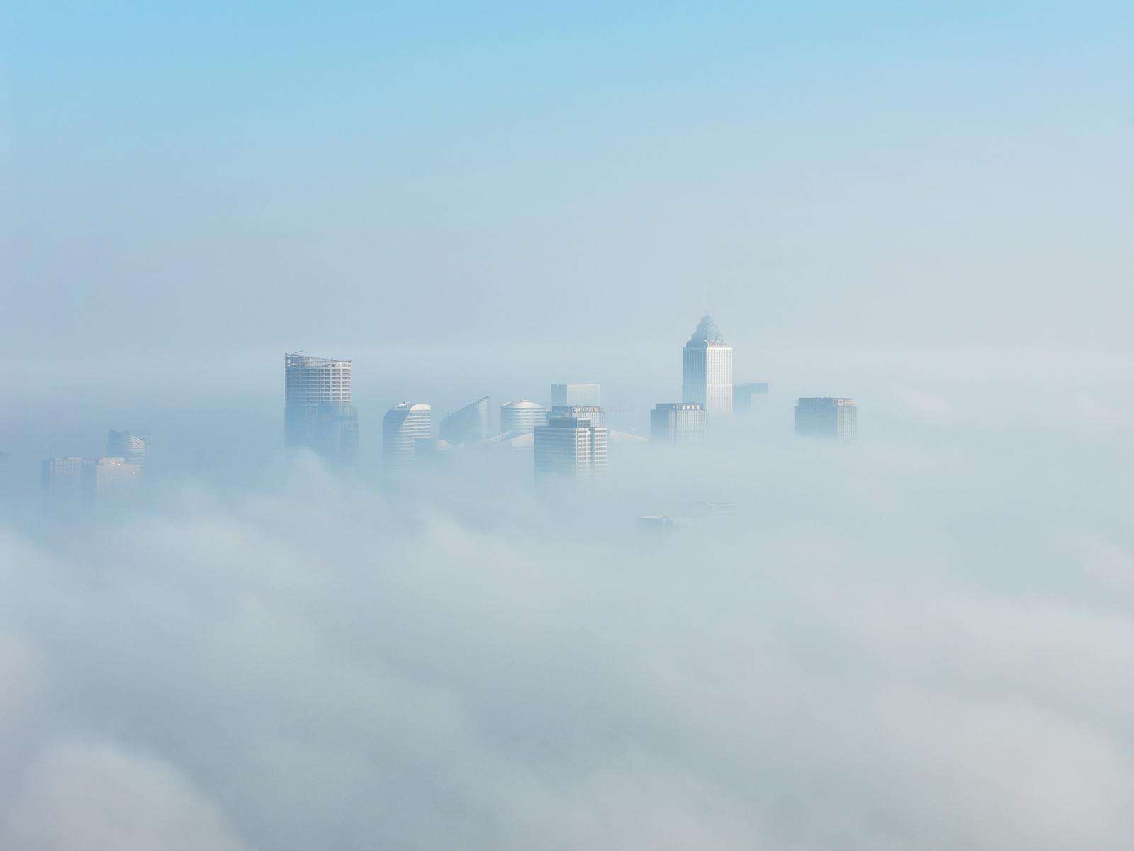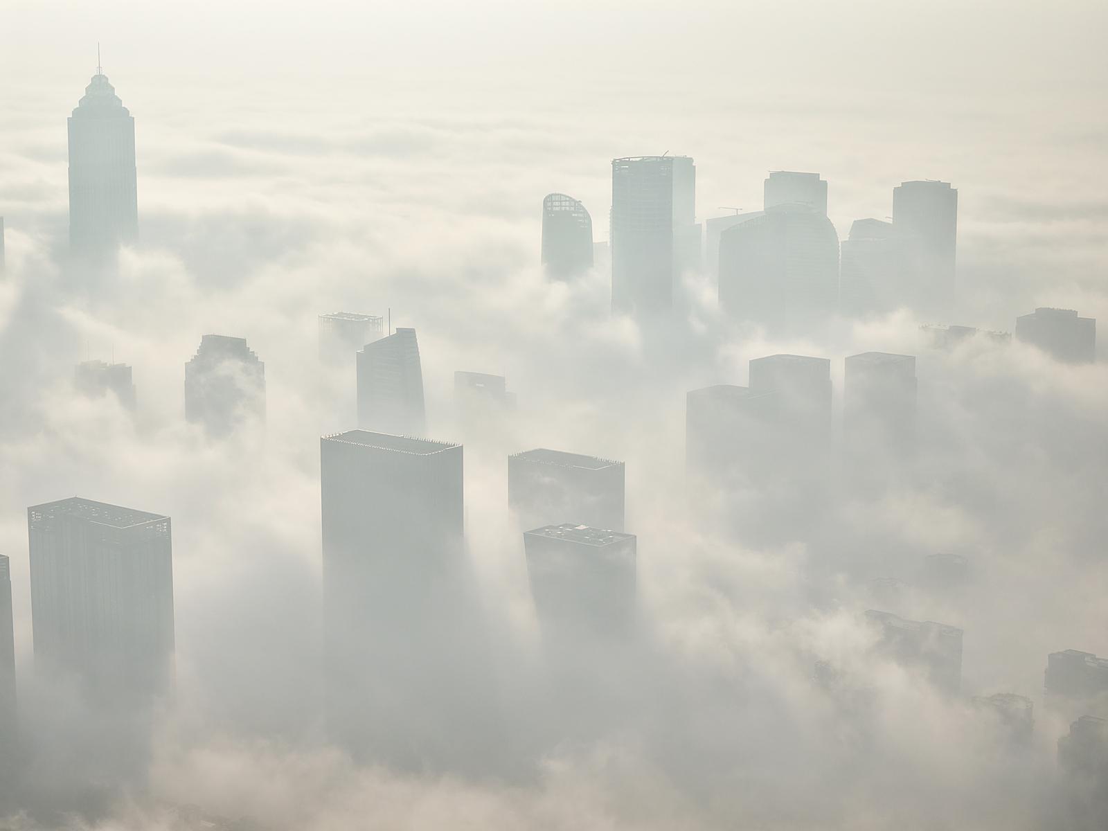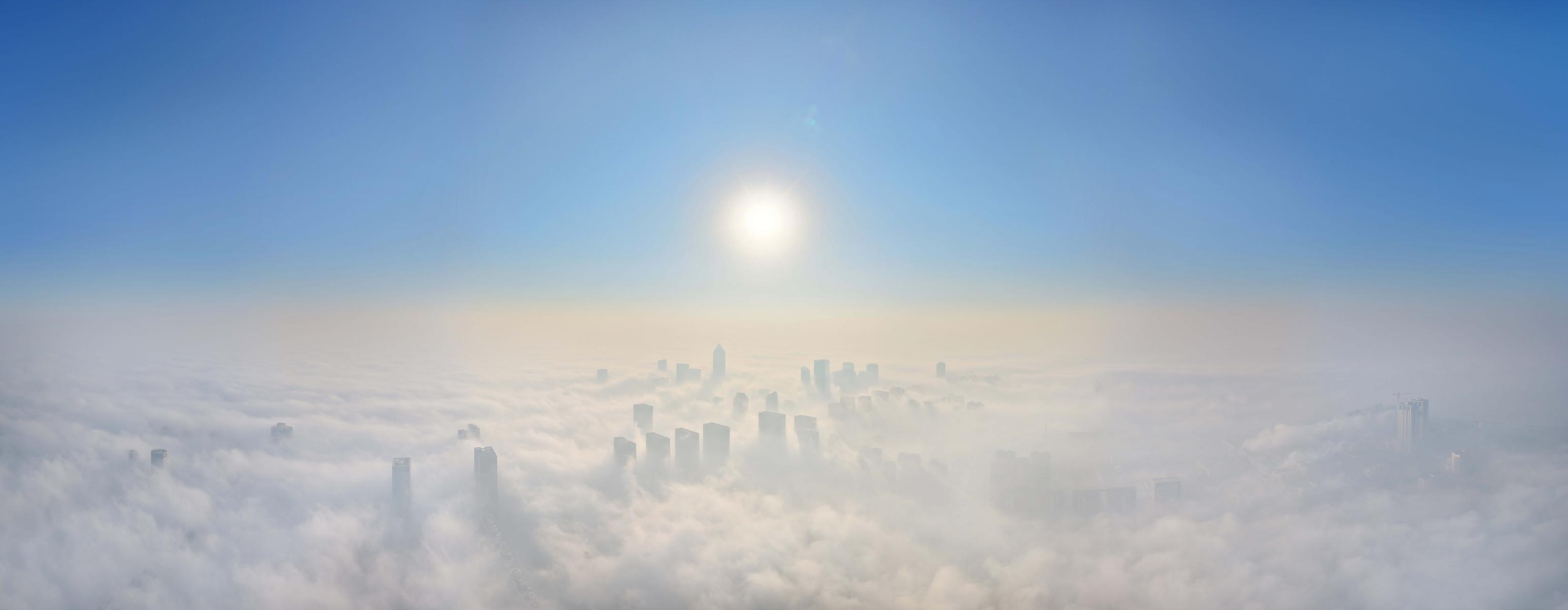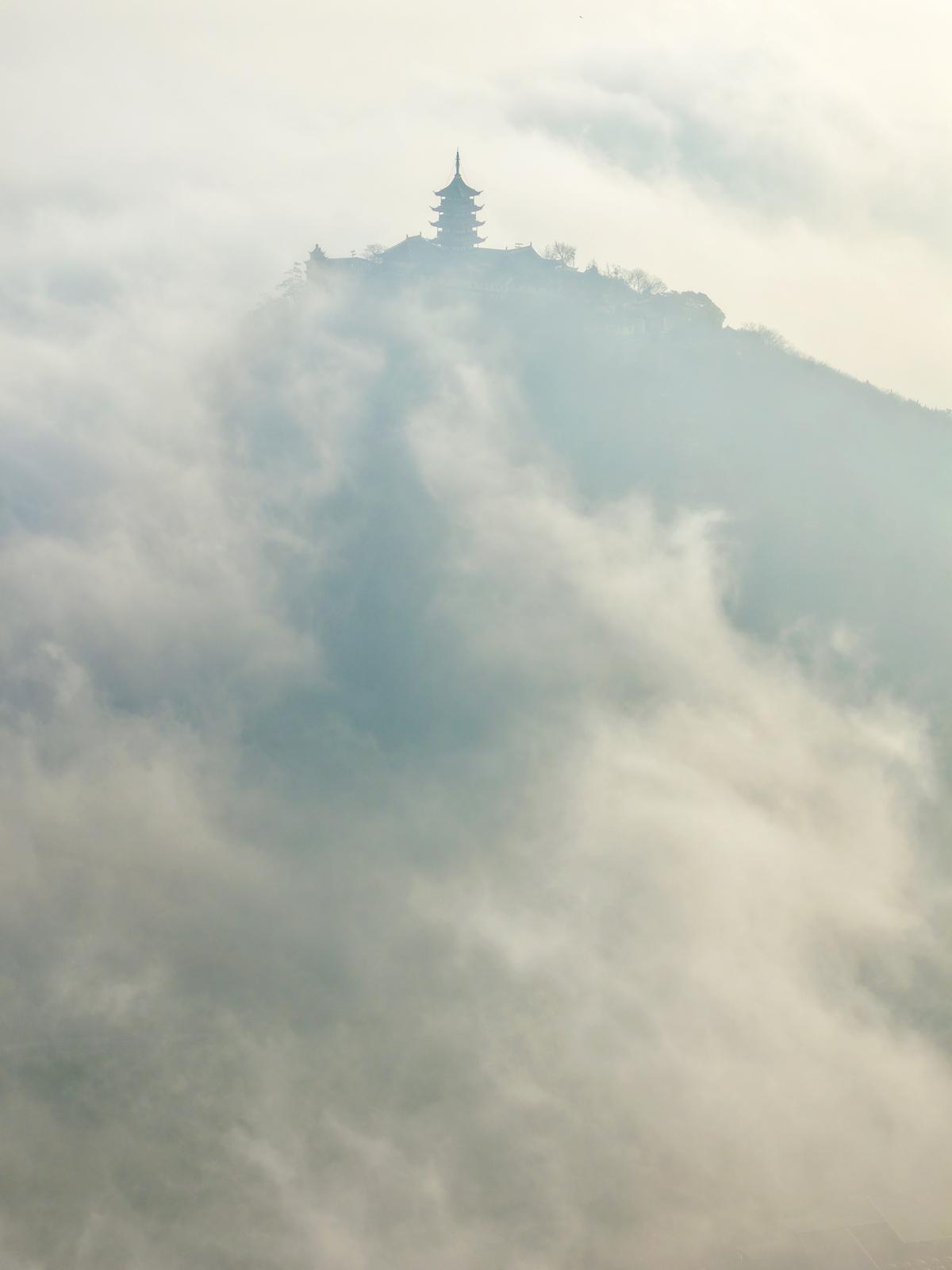 2026年1月16日,晨雾中的南通狼山国家森林公园和南通新城区高楼展现出别样美景。