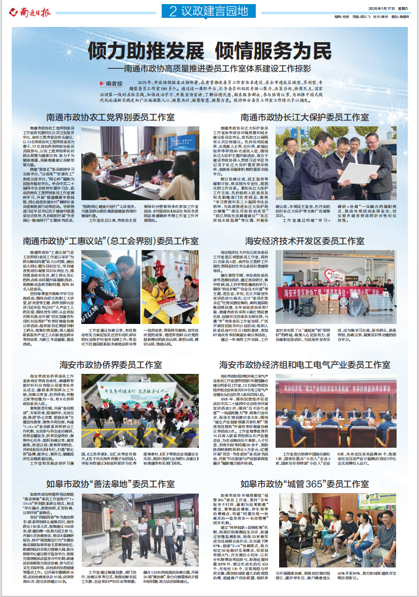 倾力助推发展 倾情服务为民——南通市政协高质量推进委员工作室体系建设工作掠影