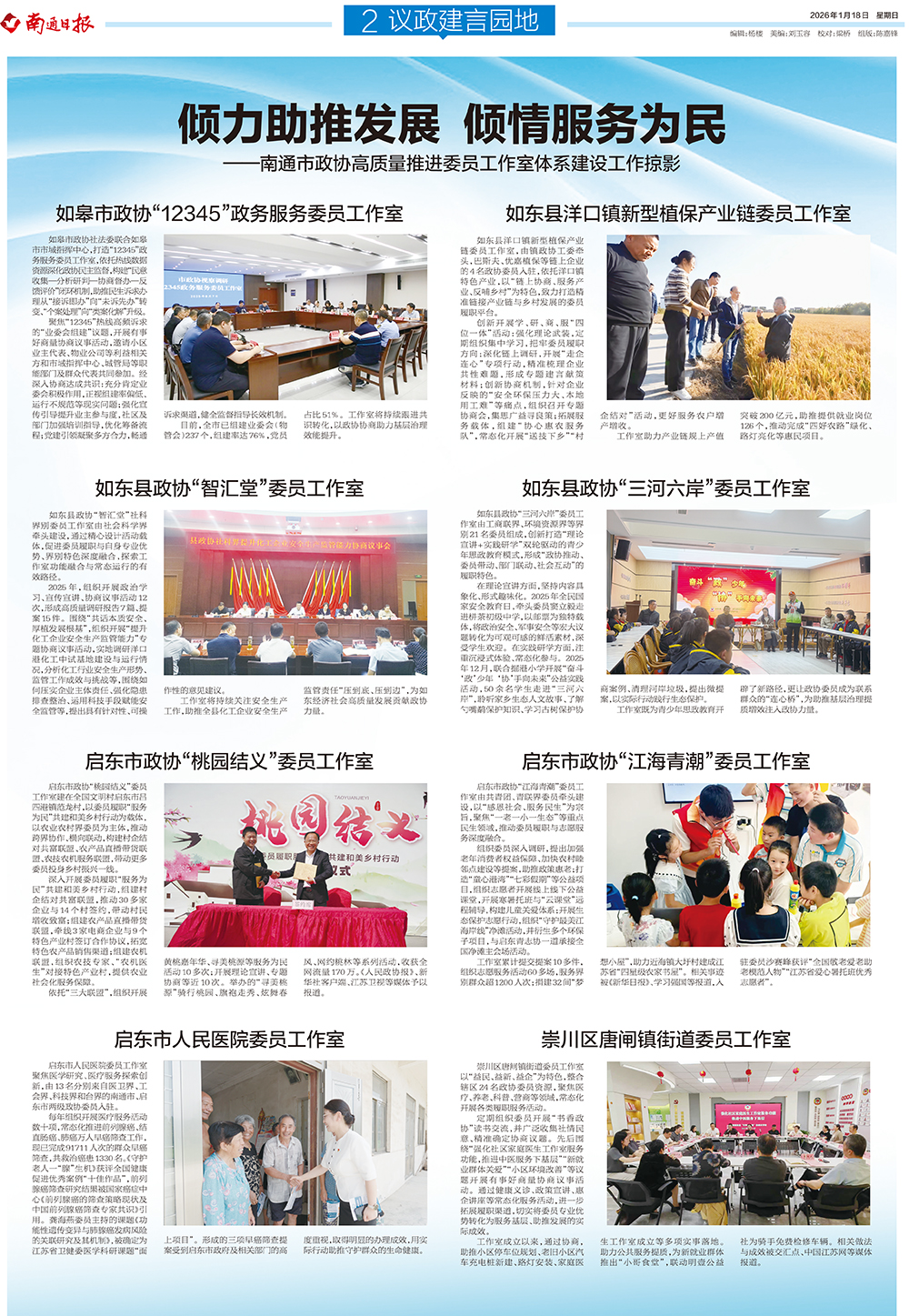 倾力助推发展 倾情服务为民——南通市政协高质量推进委员工作室体系建设工作掠影