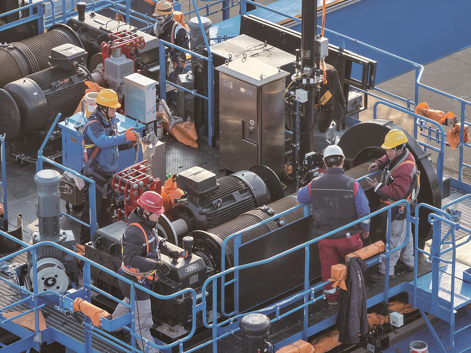 1月7日,在振华南通分公司,技术人员正在对港机产品进行总装调试。2025年,振华南通分公司共发运轨道吊、轮胎吊、装船机臂架等港机设备322台,助力马来西亚、斯里兰卡、沙特、墨西哥等国家和国内广州、上海、深圳、唐山等地自动化港口建设。 许丛军摄
