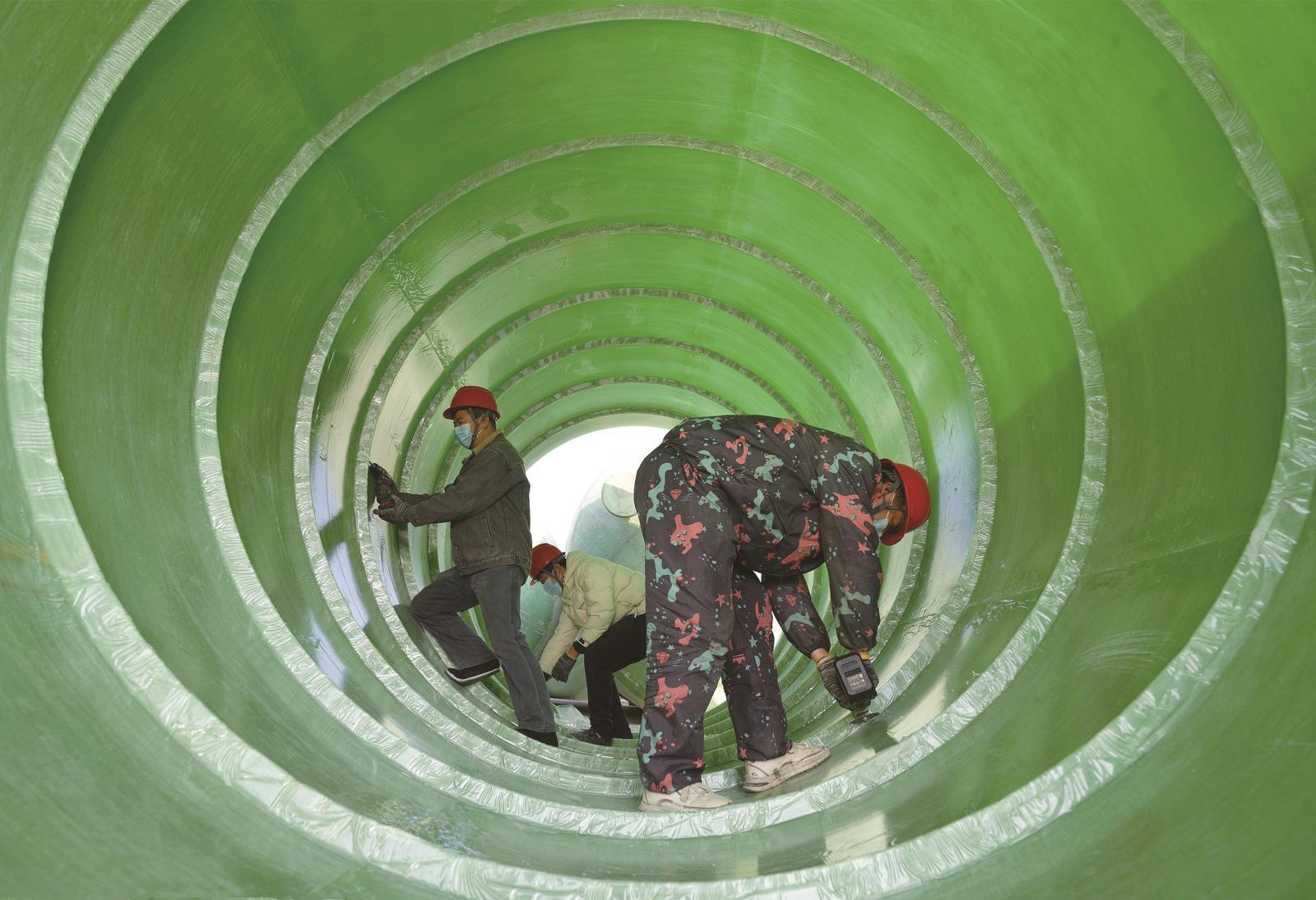 1月16日,位于海安市南莫镇的江苏五水环境工程有限公司内,工人在赶制污水处理设备订单。周强摄