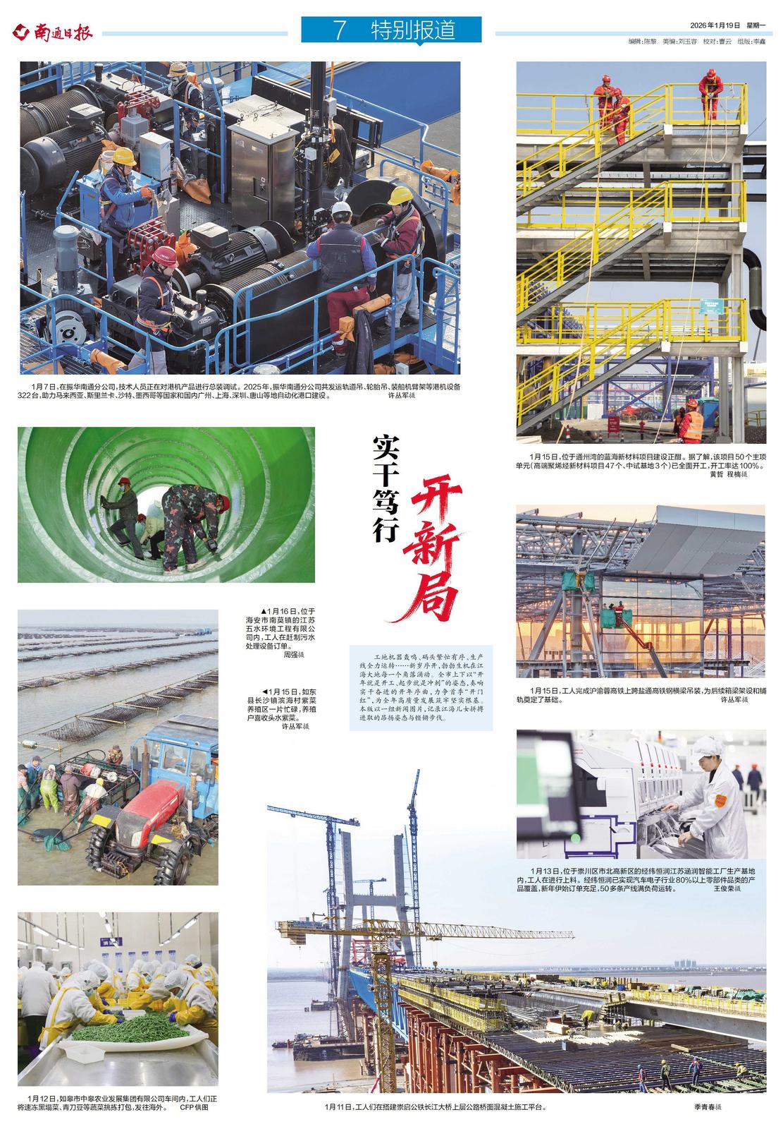 工地机器轰鸣、码头繁忙有序、生产线全力运转……新岁序开,勃勃生机在江海大地每一个角落涌动。全市上下以“开年就是开工、起步就是冲刺”的姿态,奏响实干奋进的开年序曲,力争首季“开门红”,为全年高质量发展筑牢坚实根基。南通发布以一组新闻图片,记录江海儿女拼搏进取的昂扬姿态与铿锵步伐。