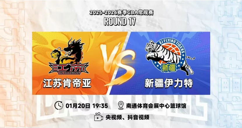 1月20日19时35分,2025—2026年赛季CBA常规赛第十七轮,江苏肯帝亚迎来了南通赛区的首场比赛,对手是新疆伊力特。这是江苏队本赛季第二次与其交手,首战江苏队告负。本场比赛江苏队能否以两连胜的势头拿下新疆队,这让不少球迷拭目以待。