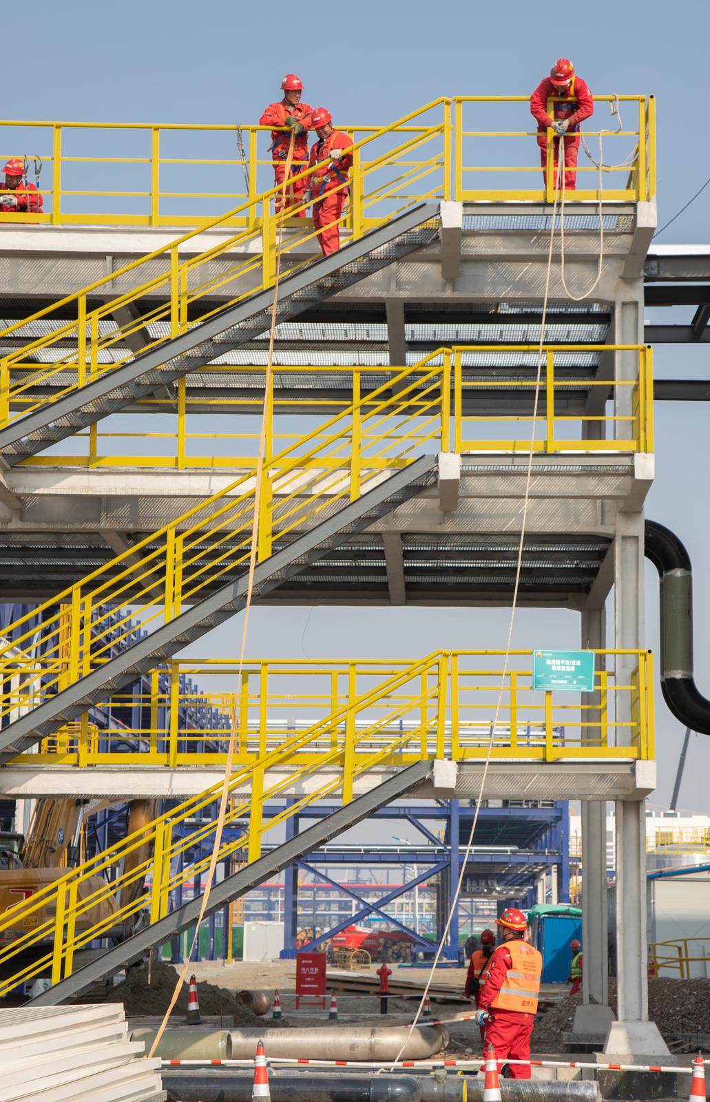 近日,记者在通州湾拍摄到,蓝海新材料项目建设正酣。据了解,该项目50个主项单元(高端聚烯烃新材料项目47个、中试基地3个)已全面开工,开工率达100%。高端聚烯烃新材料项目整体进度75.16%,中试基地项目整体进度97.74%。项目处于钢结构、储罐、设备安装全面施工;工艺管道、电仪安装启动阶段。