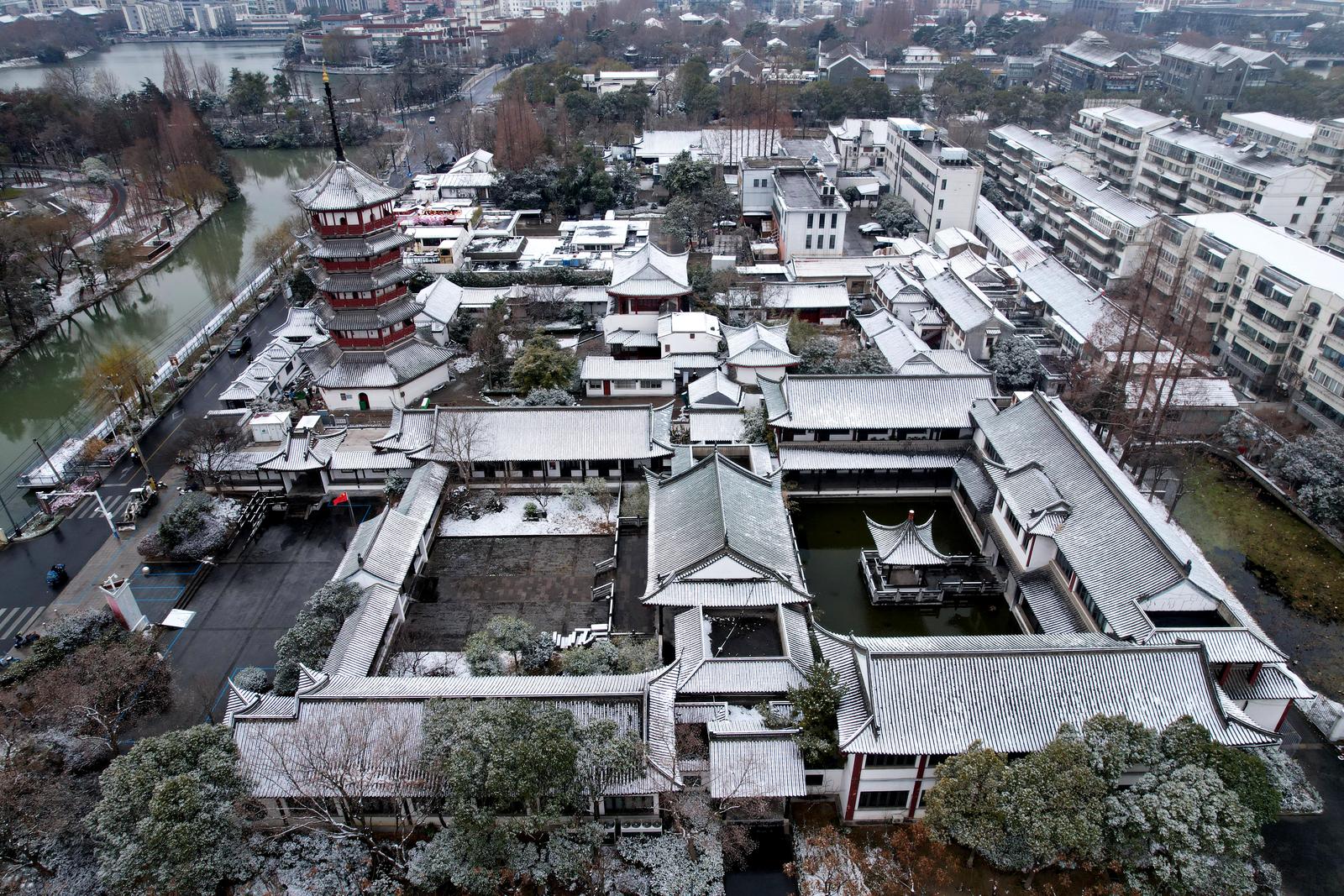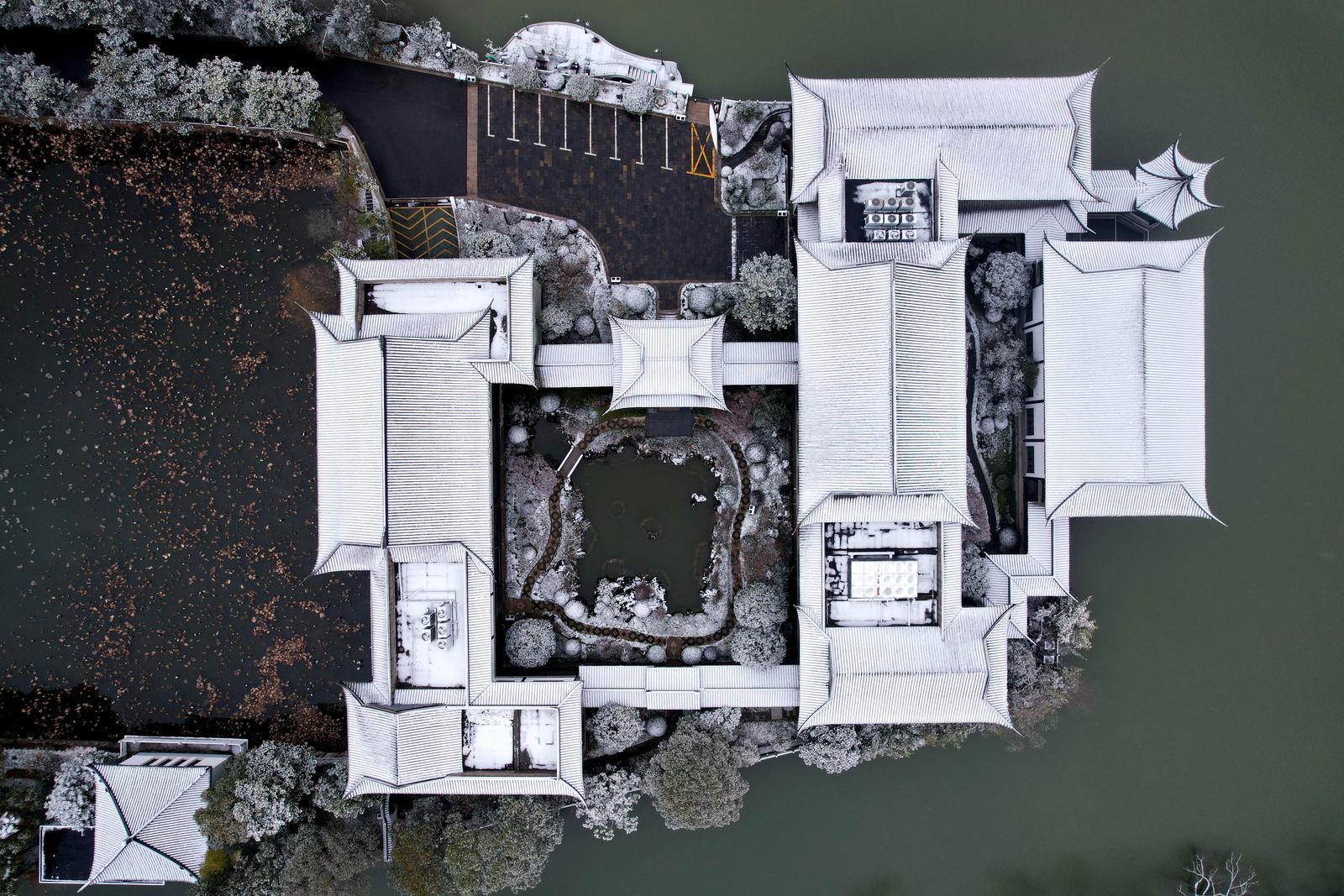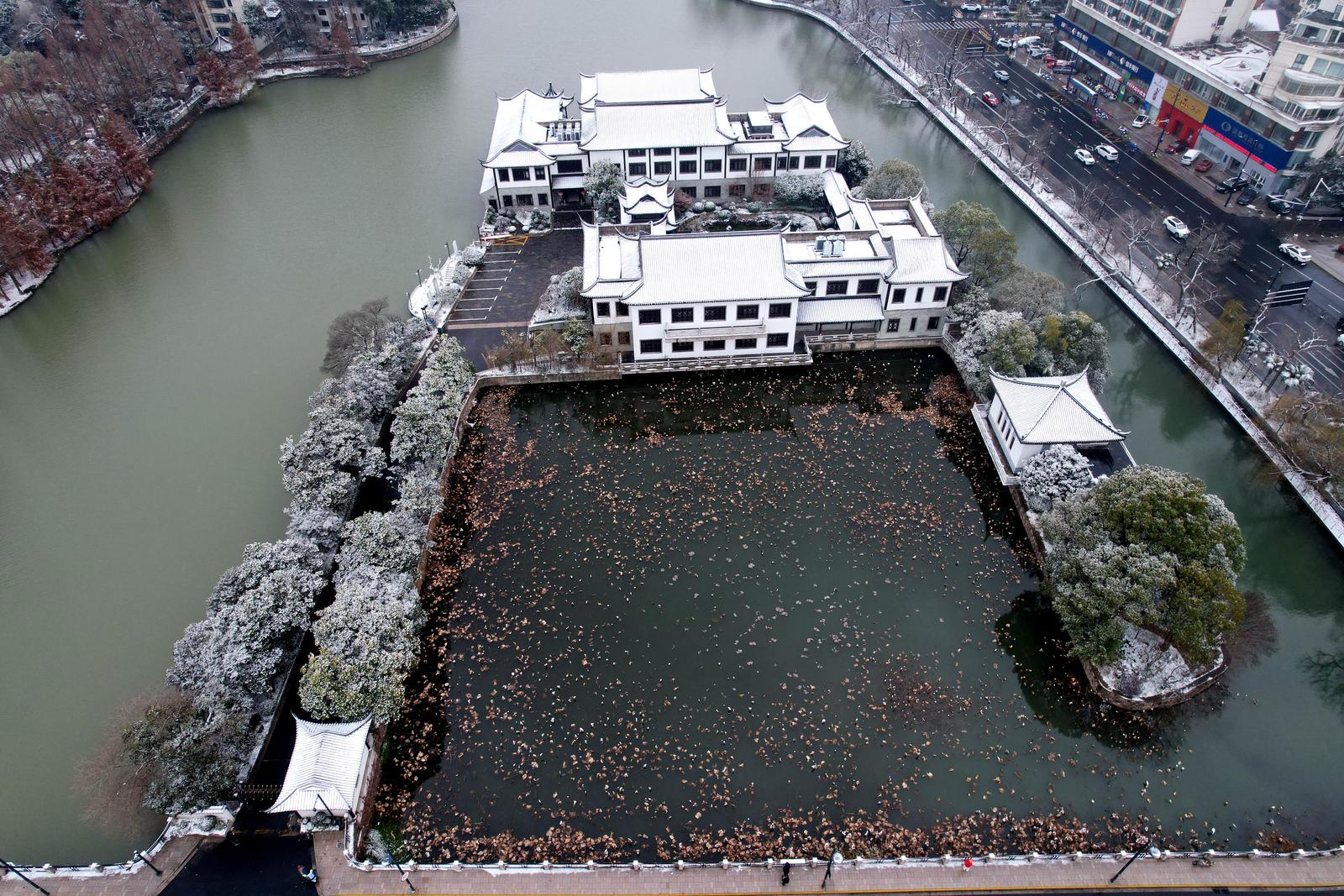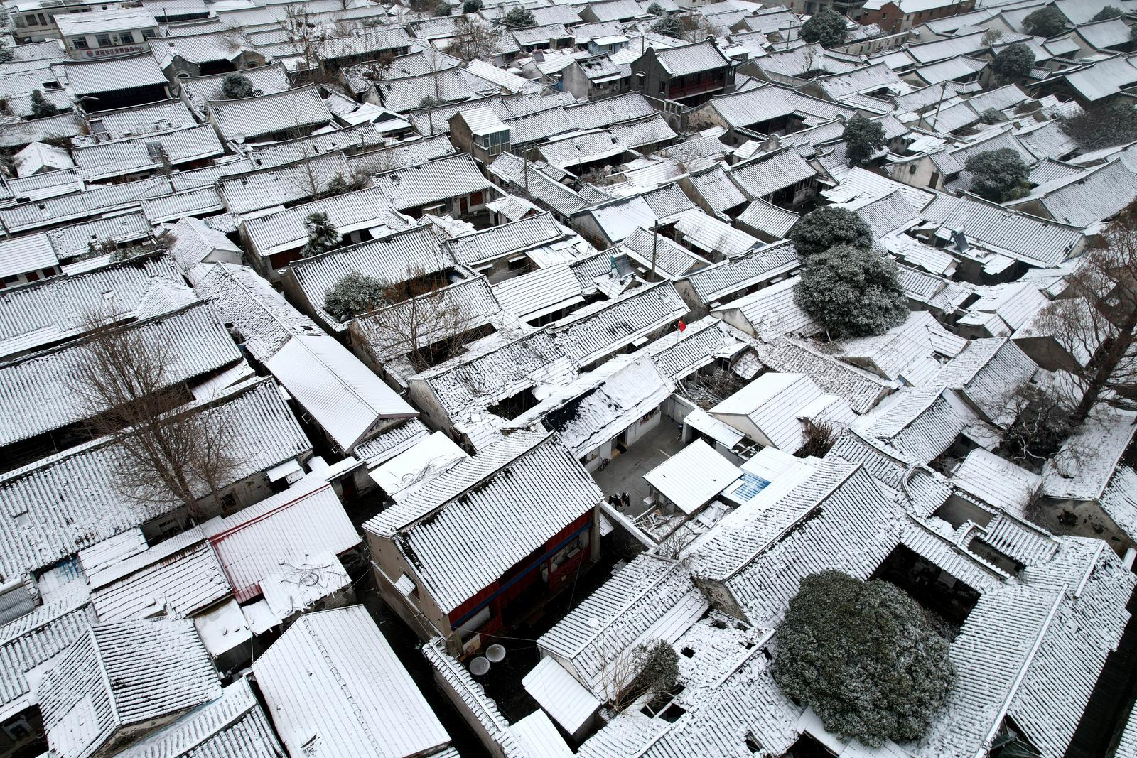 1月20日,通城经过降雪之后,高楼、树木、屋顶被皑皑白雪笼罩,成了银装素裹的世界。