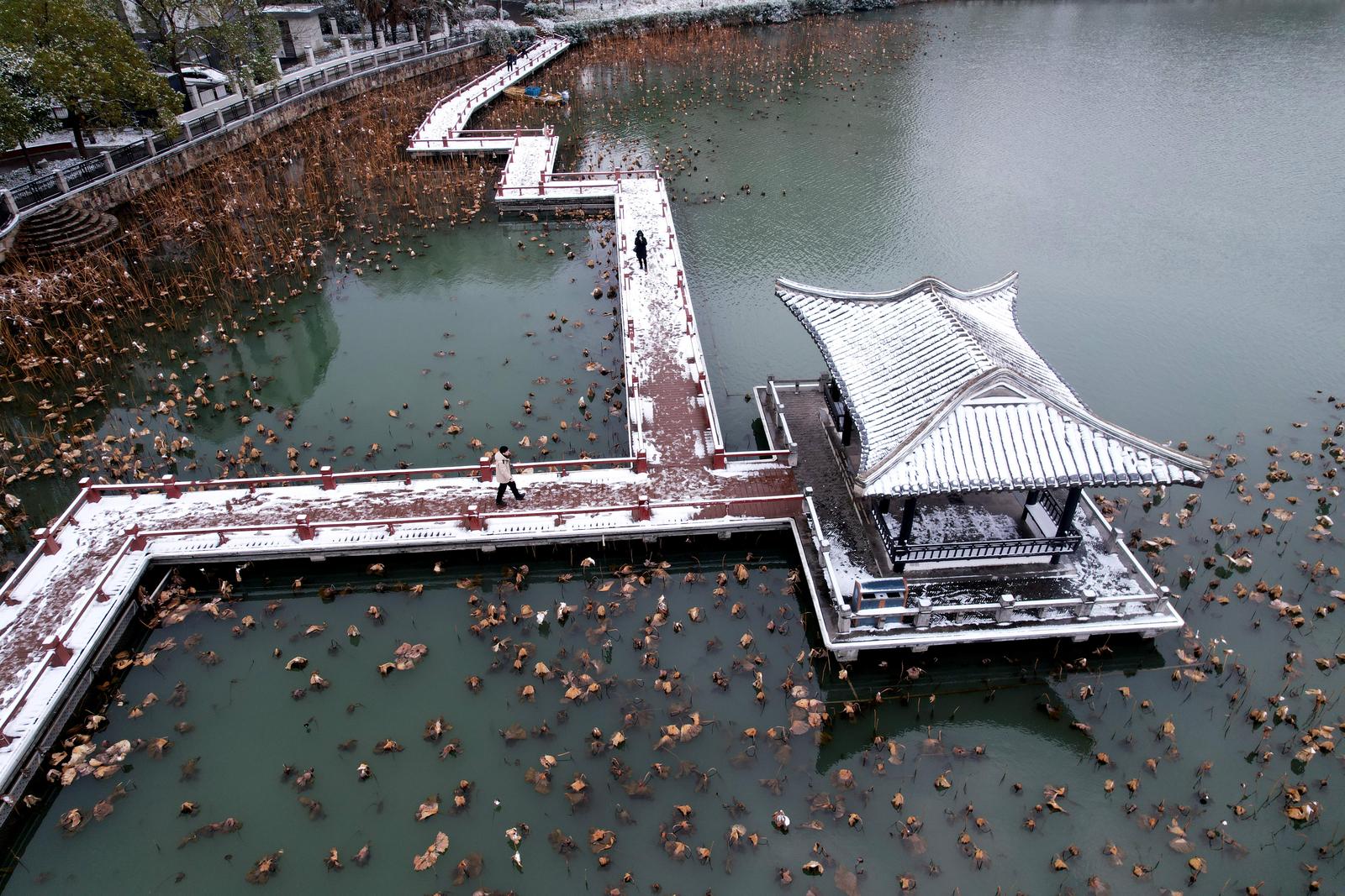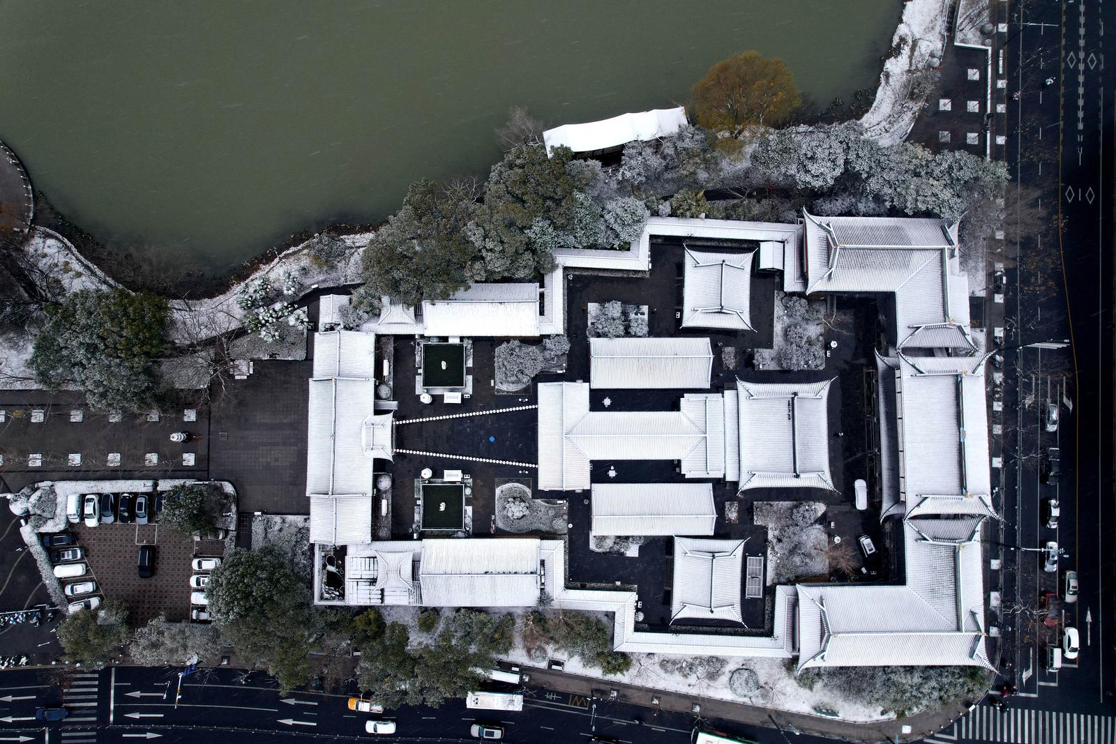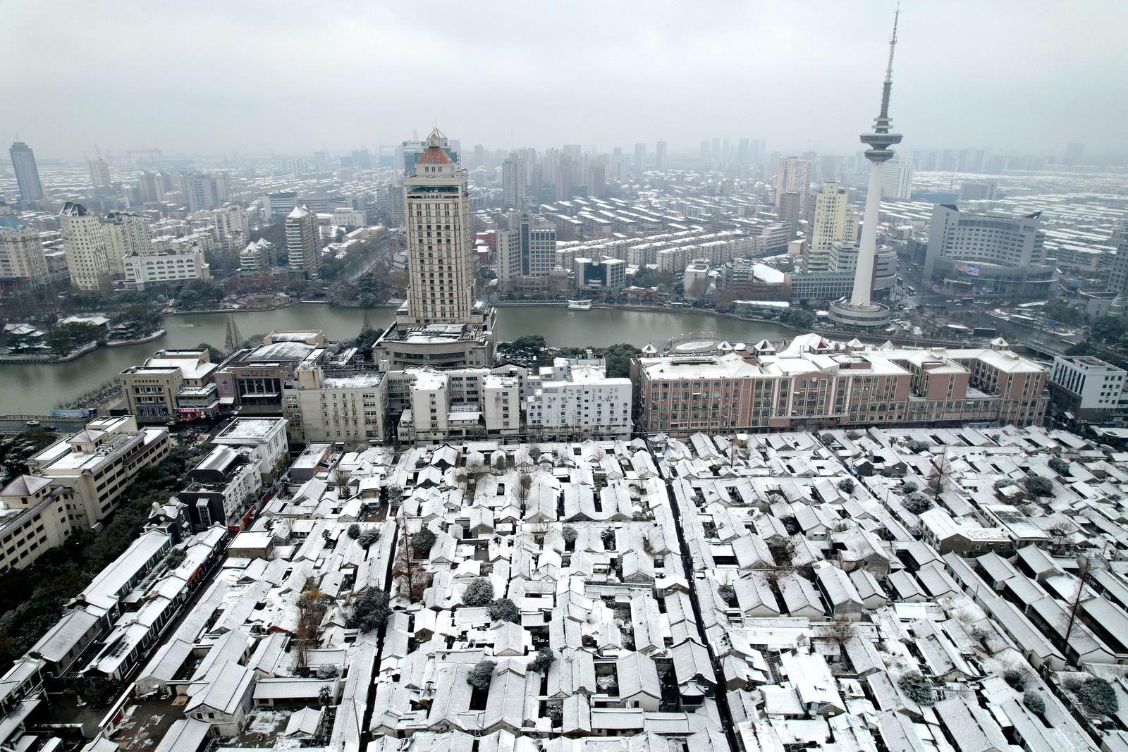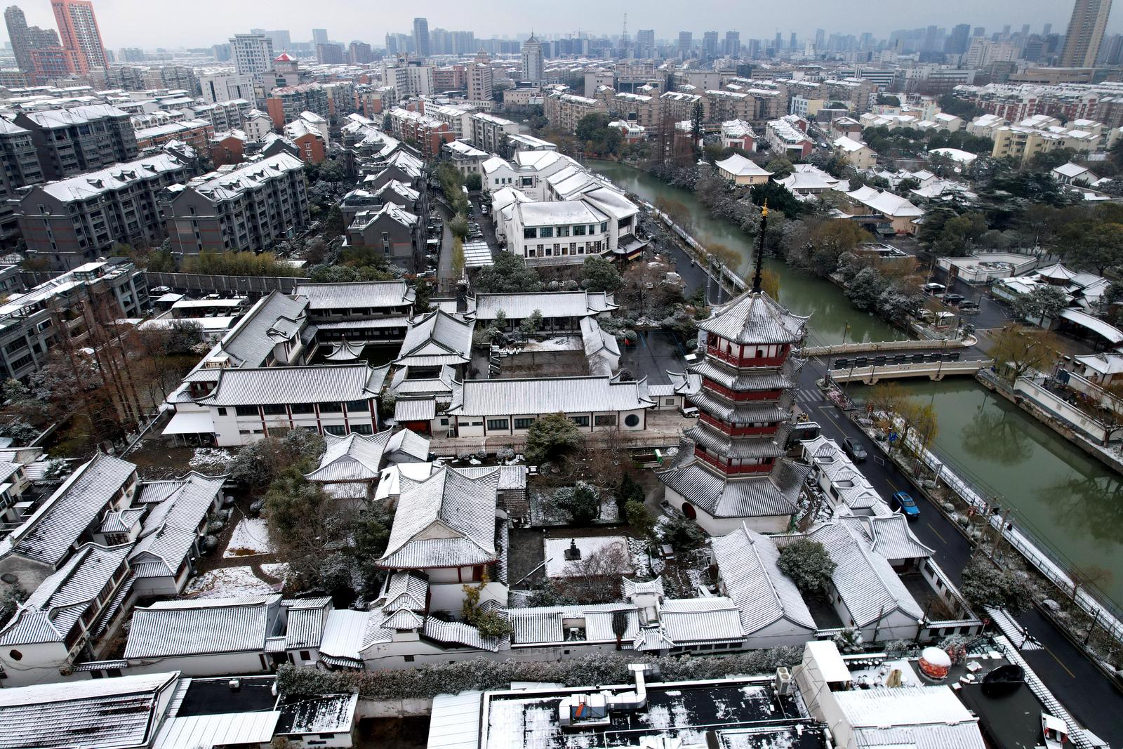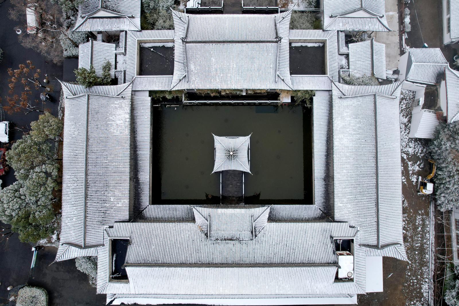 1月20日,通城经过降雪之后,高楼、树木、屋顶被皑皑白雪笼罩,成了银装素裹的世界。