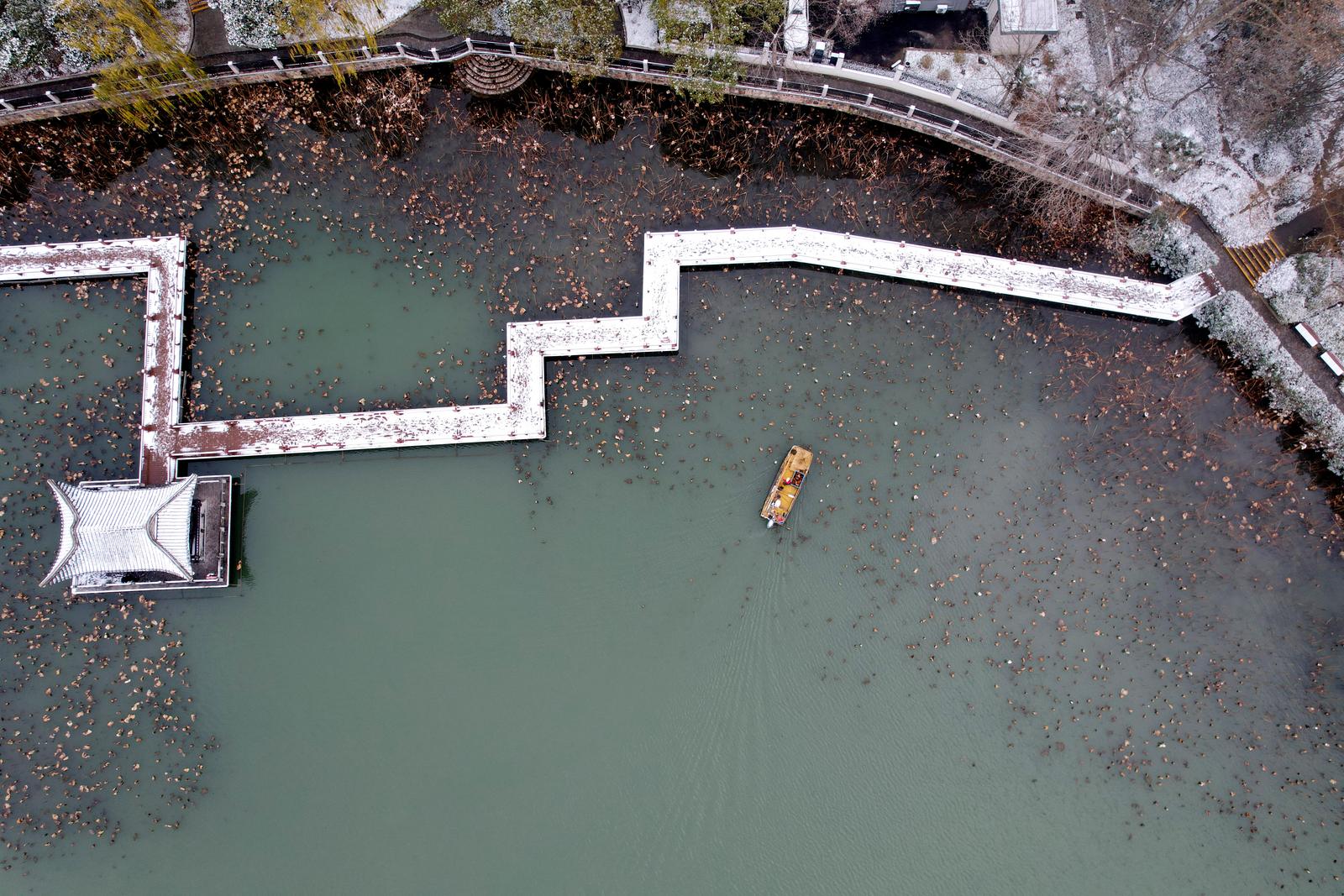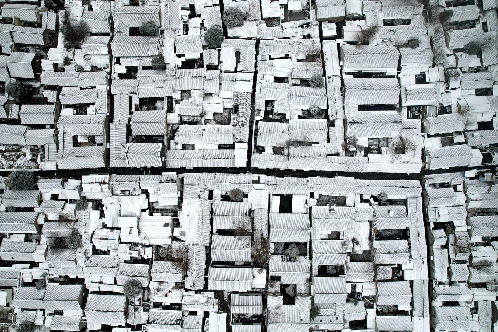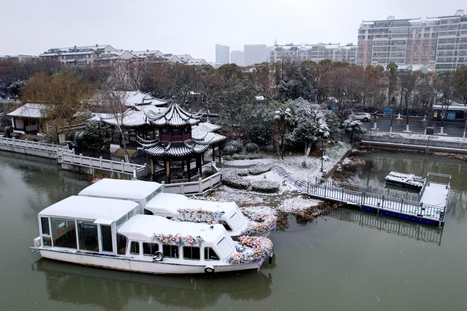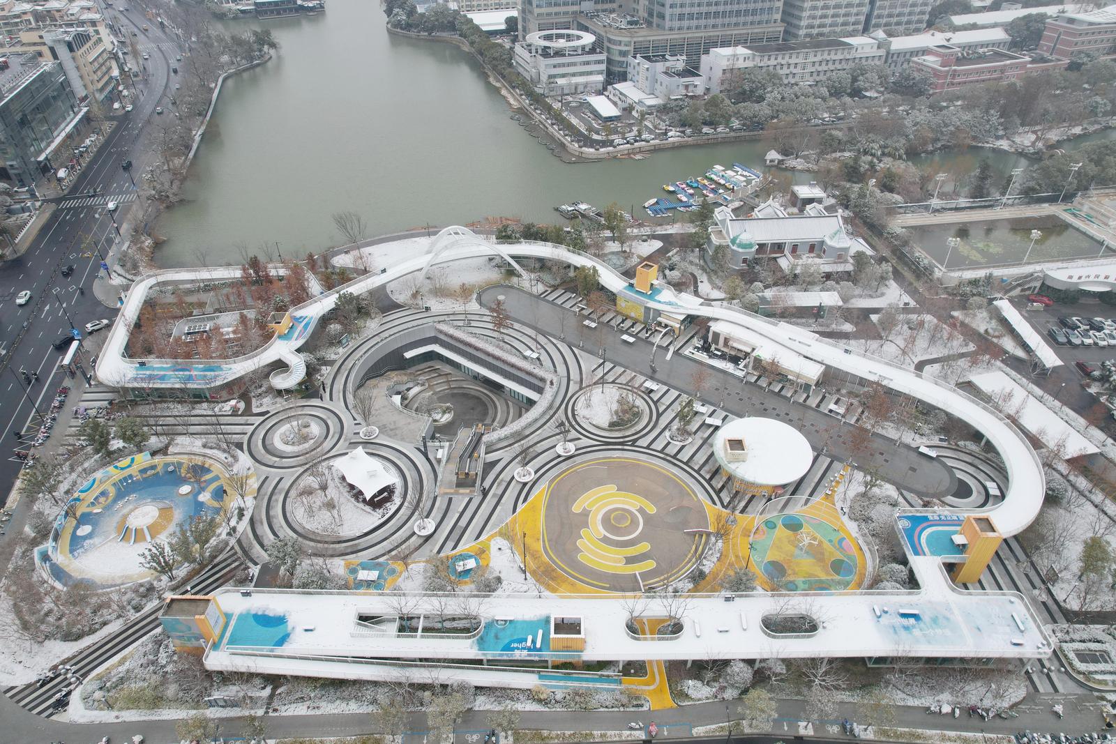 1月20日,通城经过降雪之后,高楼、树木、屋顶被皑皑白雪笼罩,成了银装素裹的世界。