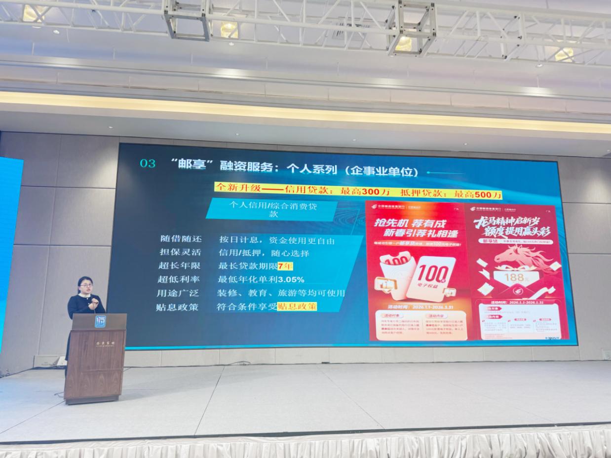 1月15日,邮储银行启东市支行作为唯一金融机构受邀出席启东市海门商会第一次会员大会,支行参会团队与商会核心班子成员深入交流,详细介绍了公司金融、普惠金融,三农金融、个金产品等全业务体系,以及针对商会会员定制的"一企一策"服务方案,现场发放定制化宣传材料,精准对接企业金融需求。