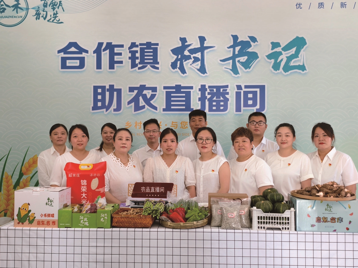 去年5月10日,合作镇8位村支书组团,在抖音账号合禾农旅开启了首场直播,村支书们化身“直播天团”,将各村王牌农产品小糖丸西瓜、美都西瓜、鲜采芦笋、新鲜鸭蛋、玉菇甜瓜等搬上“云端”,短短1小时,售出200多单。