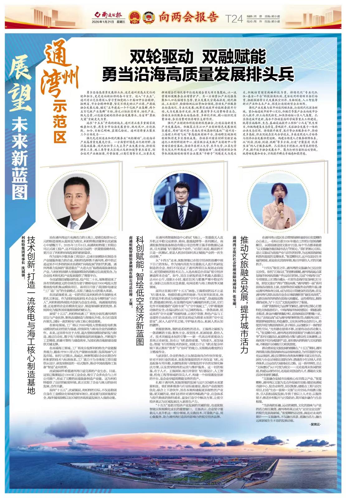 向两会报告|通州湾示范区:双轮驱动 双融赋能 勇当沿海高质量发展排头兵