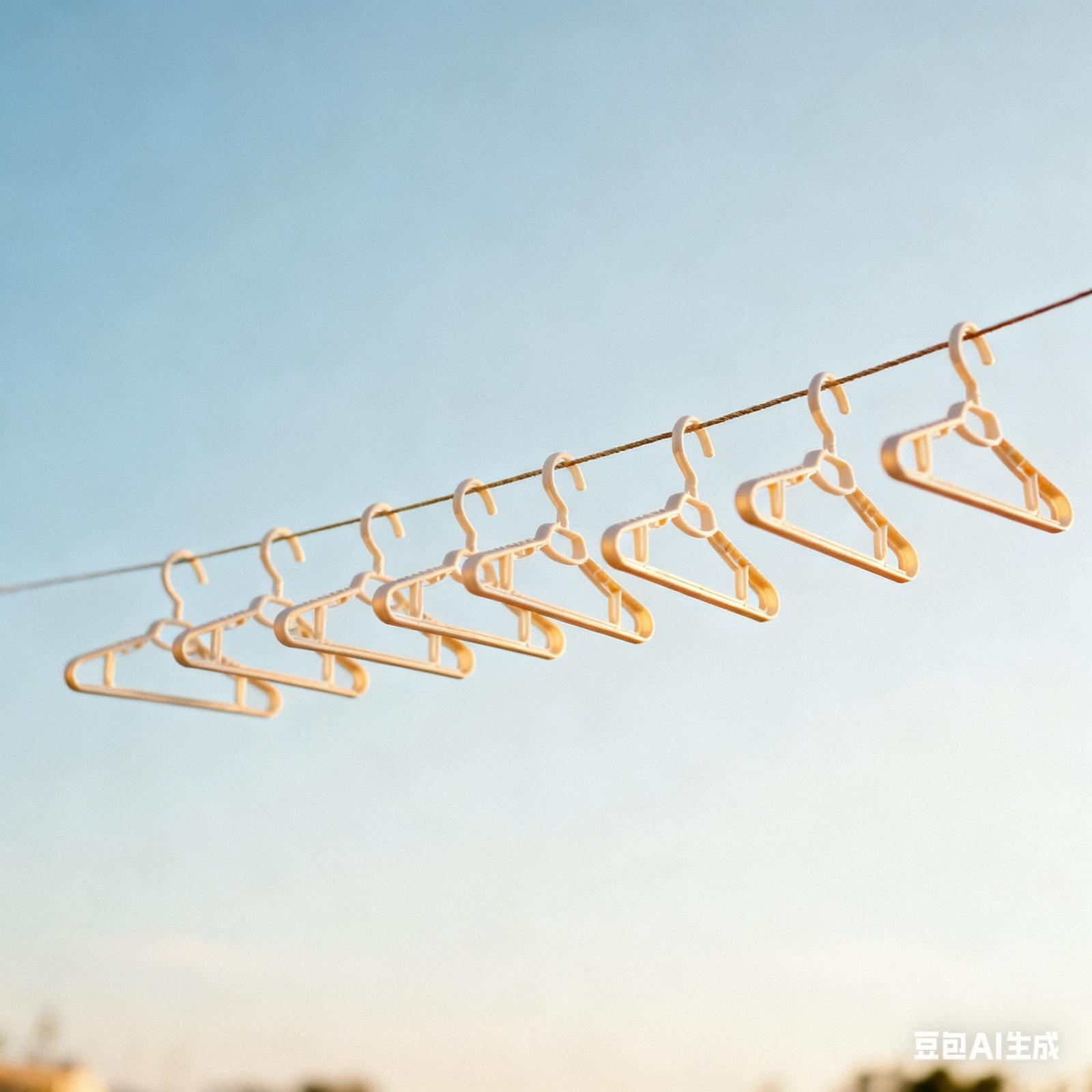 翠色与暗红,一根根静默地悬在晾衣绳上。内骨撑起微微泛白的塑料套管,匀称的骨架,圆润的肩弯,这便是我的那些晒衣架。它们像一列从旧时光里走来的士兵,身着老式军装,腰杆挺直,神情坚毅而沉静。伸手轻触,塑料套管温凉的触感漫过指尖,稍一用力,铁丝骨架便传来沉甸甸、不容置疑的厚实感。三十年岁月流转,这股坚实非但未有半分消减,反倒在时光的淬炼中,沉淀出一种独有的分量。