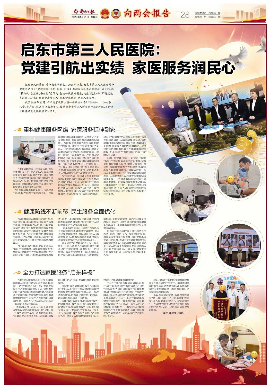 向两会报告 | 启东市第三人民医院:党建引航出实绩 家医服务润民心