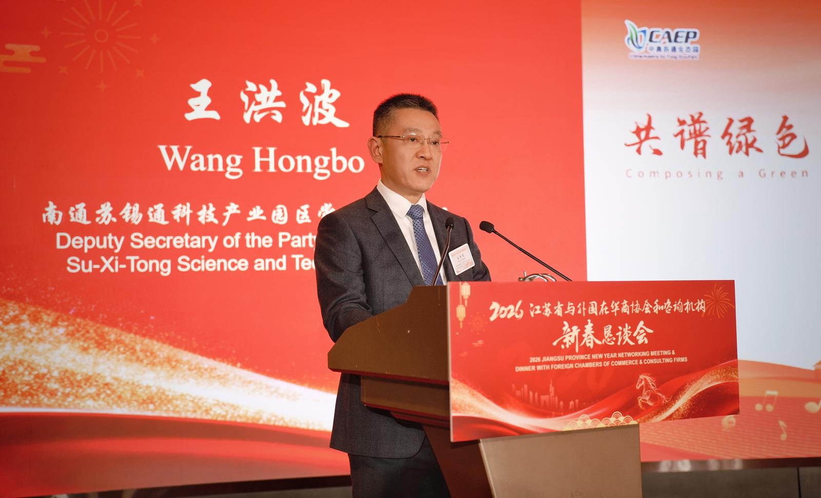 1月21日,2026年江苏省与外国在华商协会和咨询机构新春恳谈会在上海举行,苏锡通科技产业园区以“沪苏跨江融合发展试验区”核心载体身份参会,重点推介中奥苏通生态园跨国合作成果,向全球客商展现园区的开放活力与发展潜力。