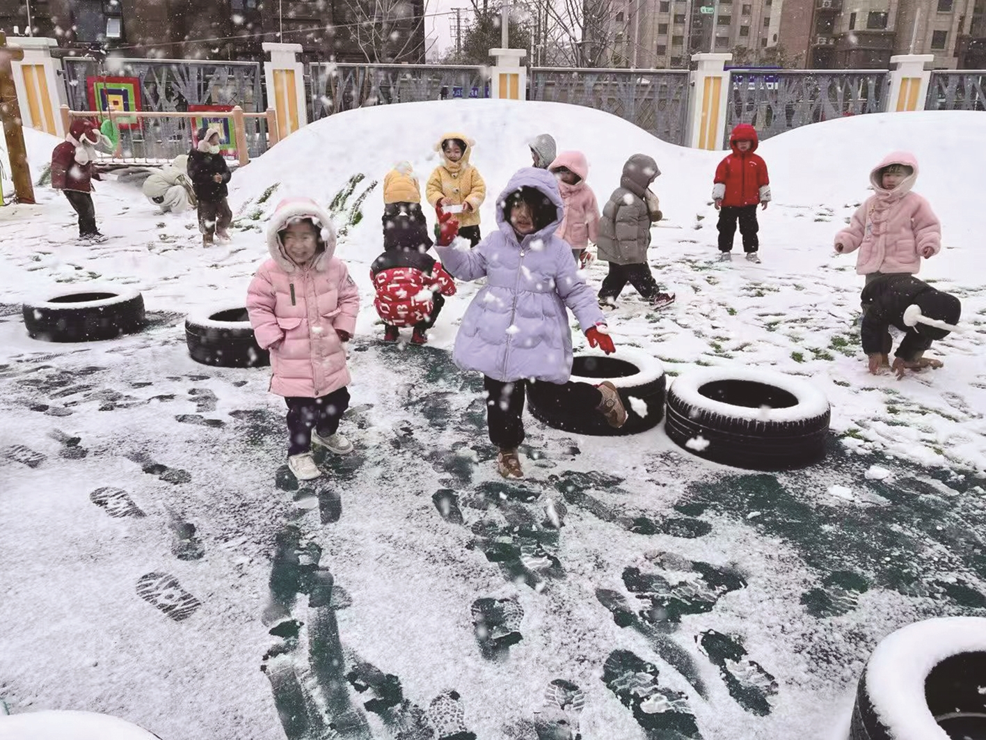 雪还在落,落在枝丫上,落在秋千上,落在滑梯上。这洁白温柔的雪让幼儿园沉浸在软软的欢喜里。没有复杂的游戏,只是最简单的追逐、最纯粹的欢笑,就把这大寒的寒意都焐热了。