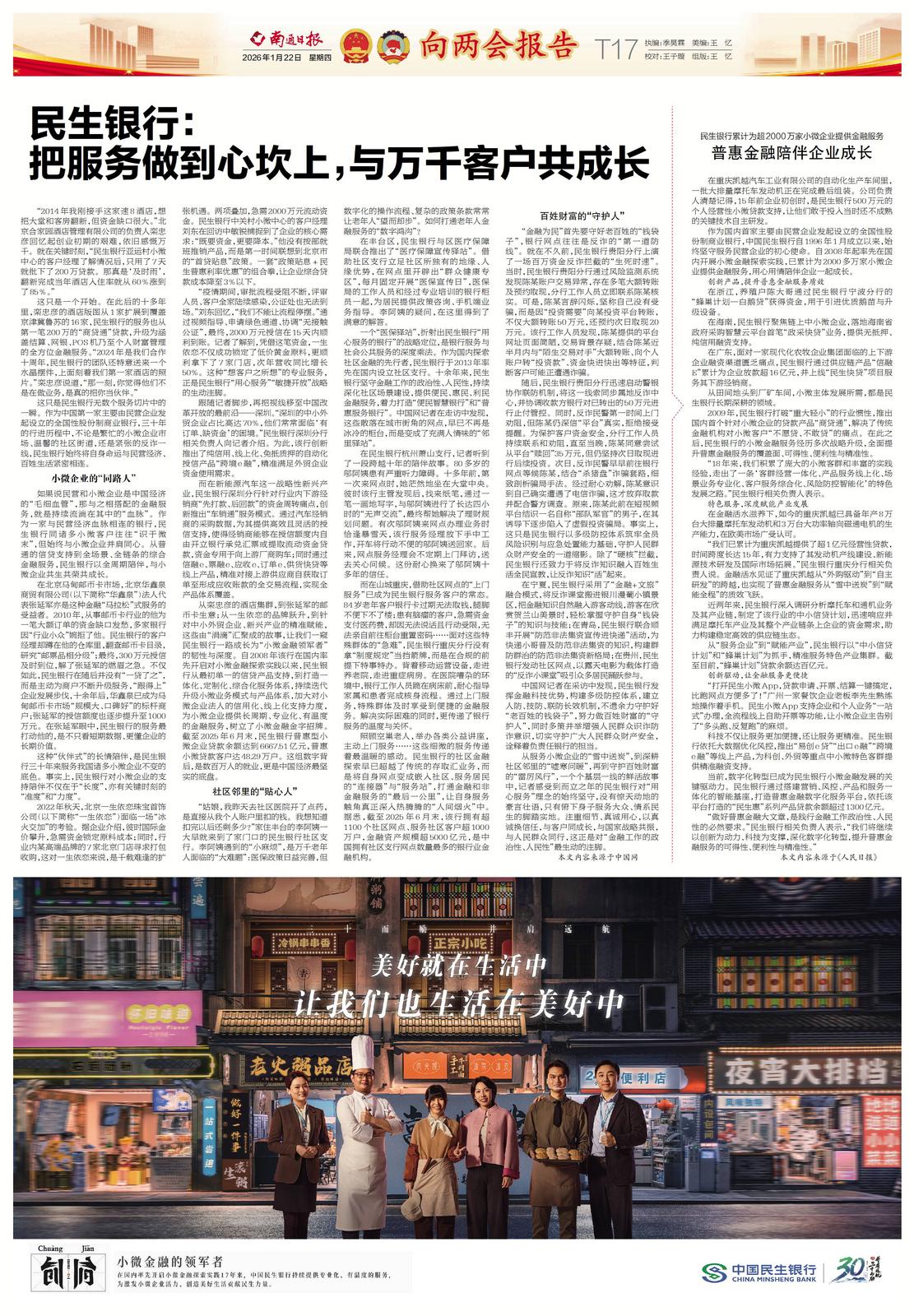 向两会报告 | 民生银行:把服务做到心坎上,与万千客户共成长