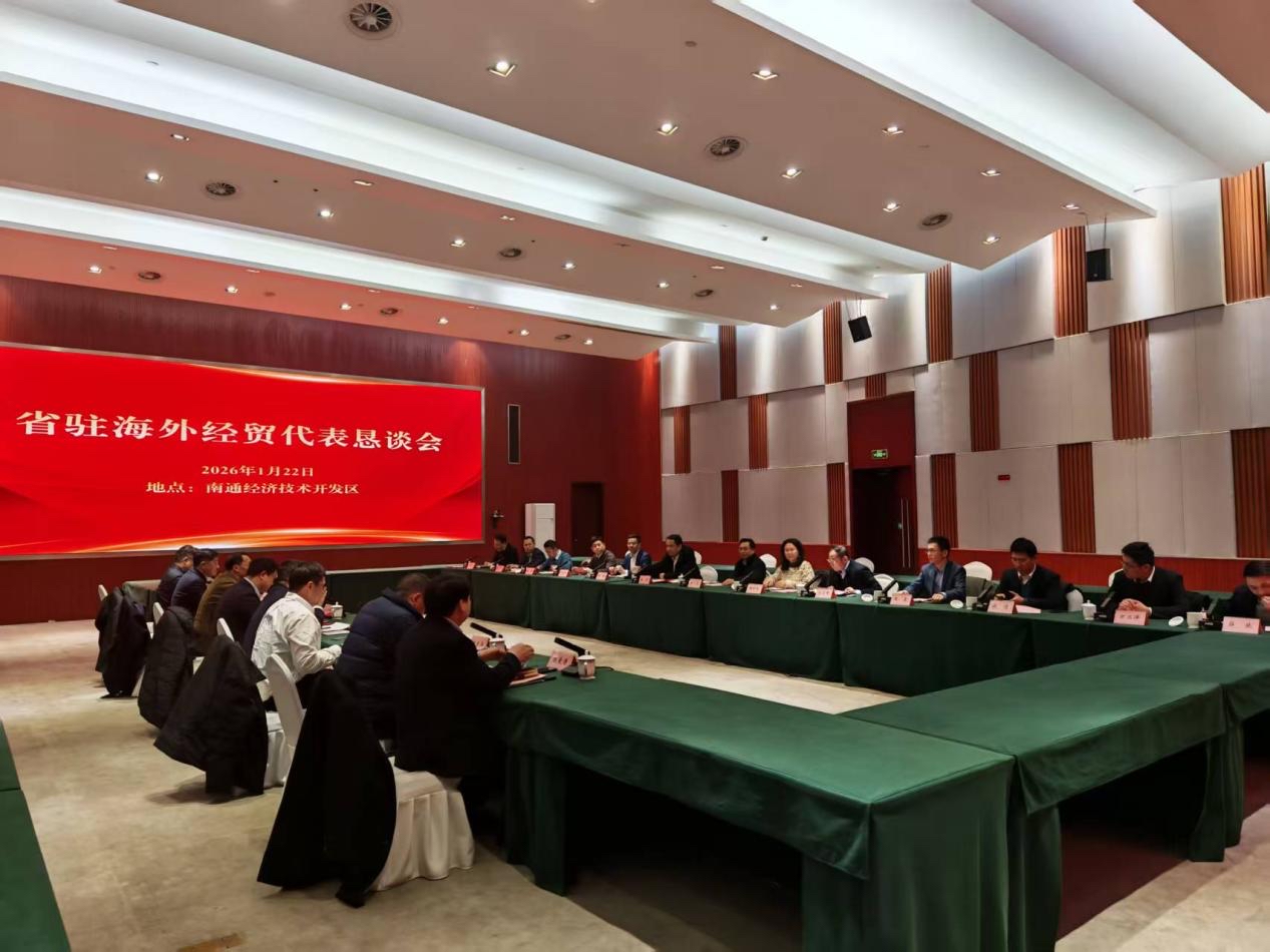1月22日,江苏省驻海外经贸代表团一行在南通市开展考察交流活动。代表团先后赴启东吕四港开发区、苏锡通科技产业园区、南通经济技术开发区进行实地调研,深入了解我市重点产业发展、开放平台建设及代表性企业运营情况,并围绕产业协同、创新合作与高质量发展等议题展开深入交流。