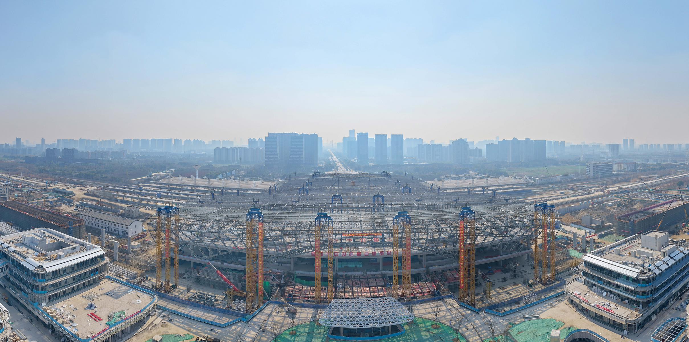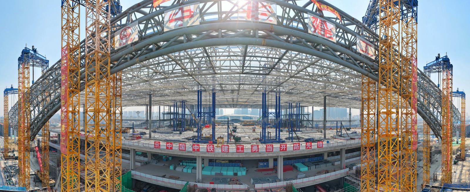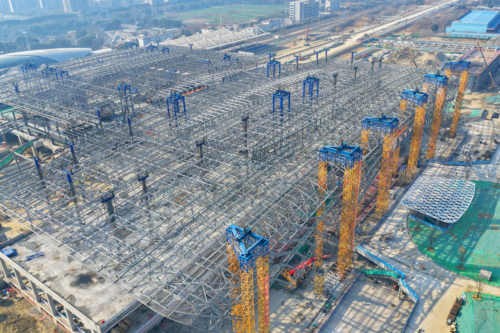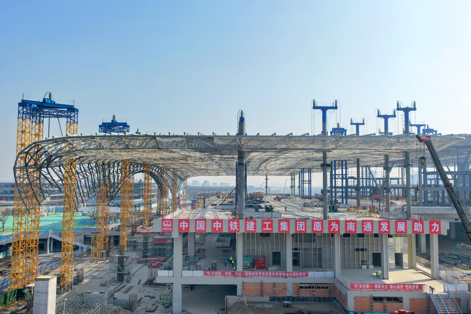 新建上海至南京至合肥高铁南通站侧式站房主体结构全面完成