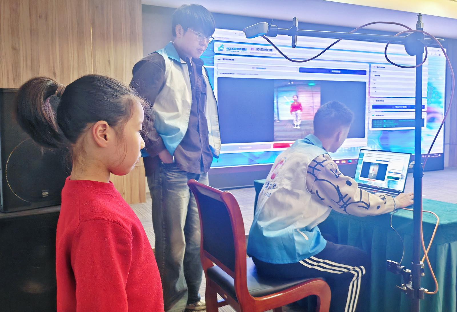 “脊柱侧弯是影响青少年生长发育的重要因素。如何早筛查、早发现,从而早干预、早治疗,是我们团队研究的方向。”现场,江苏省首席科技传播专家、南通大学电气与自动化学院教授张堃介绍了全国首创自主知识产权的脊柱侧弯AI快筛平台。“这项技术既能快速筛查出疑似病例,又能大幅减轻人工检测的负担。”张堃讲解道,体验者只需先保持自然站姿,再完成一次弯腰动作,15秒内系统便能通过人工智能分析,快速识别体态和脊柱侧弯异常疑似案例。