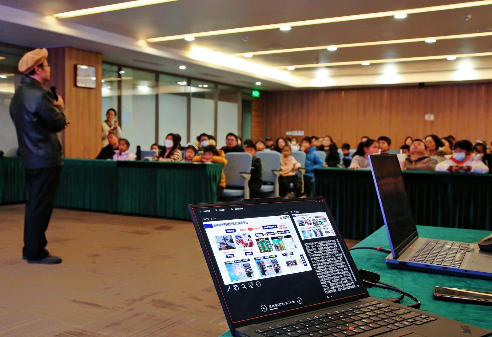 此外,张堃教授团队与市紫琅一小合作研发的基于眼动技术的小学生发展性阅读评价系统也让小记者们大开眼界。学生只需面对电脑屏幕进行正常阅读,系统便会实时追踪眼球运动轨迹,通过精准分析生成认知状态热力图,从而评估学生的专注力、阅读能力等。张堃举例道:“比如阅读古诗《望庐山瀑布》时,系统分析发现,不少孩子在标题上停留时间过短,老师可以有针对性地加强对标题的讲解。”