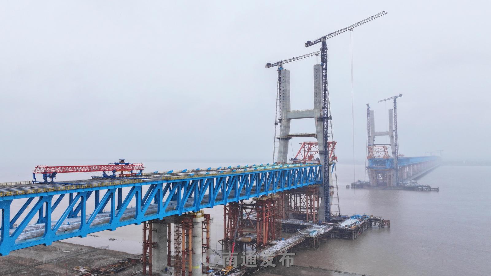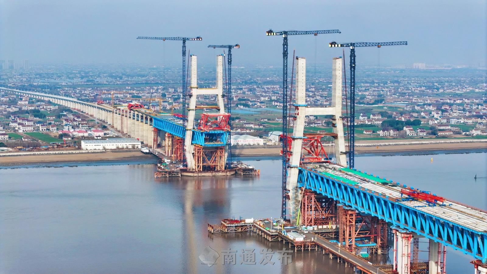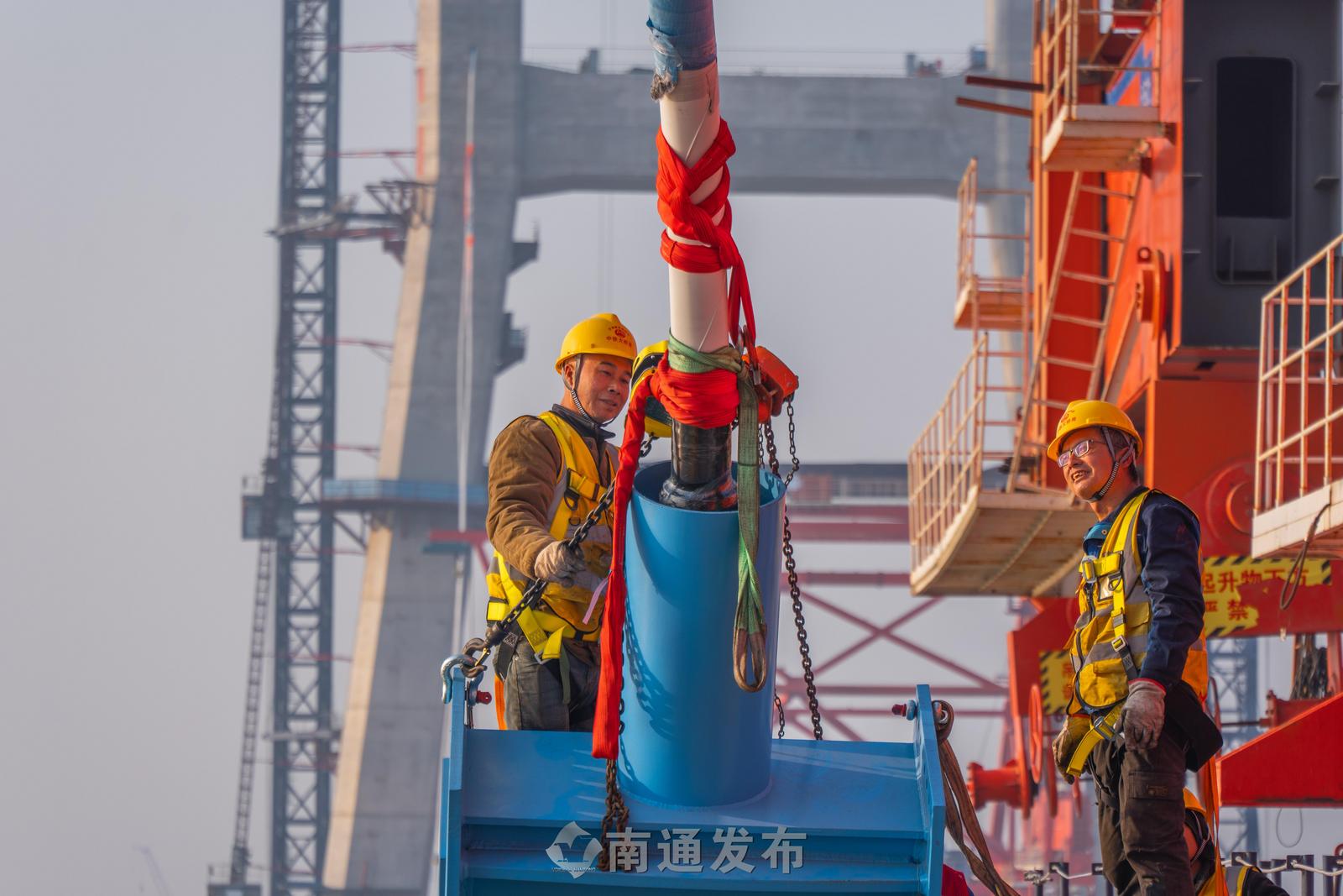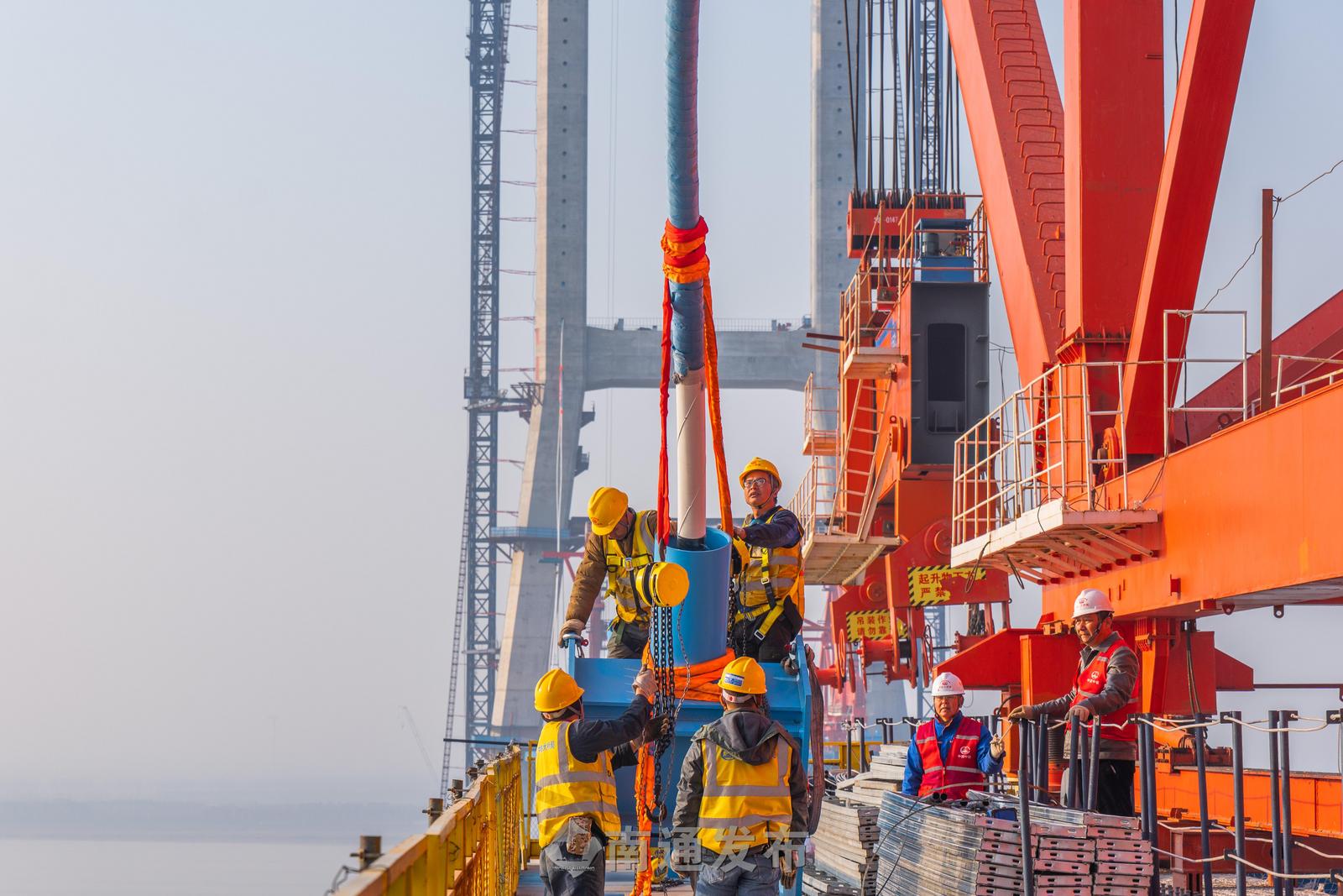 崇启公铁长江大桥正式进入主塔挂索施工