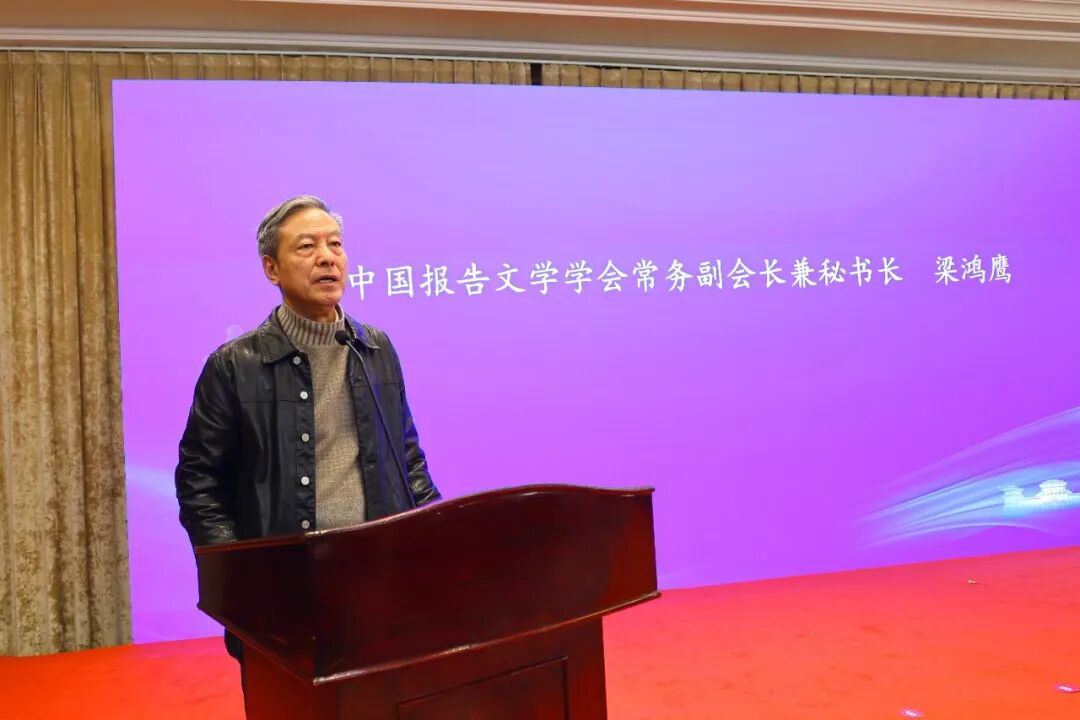 中国报告文学学会常务副会长兼秘书长梁鸿鹰介绍了入榜作品的意义和价值,指出本次遴选产生的12部中国报告文学优秀作品和12部江苏报告文学优秀作品,是2025年度报告文学文体魅力的集中彰显。作家们脚踩坚实大地,深入田野乡间、工厂社区、科研院所,以扎实的调查、敏锐的洞察和鲜活的笔触,为我们呈现了一幅幅兼具历史厚度、现实温度与思想深度的文学画卷。他希望广大报告文学作家继续扎根中国大地,深入现实肌理,聚焦时代命题,创作出更多兼具思想高度、文学厚度与情感温度的精品力作。